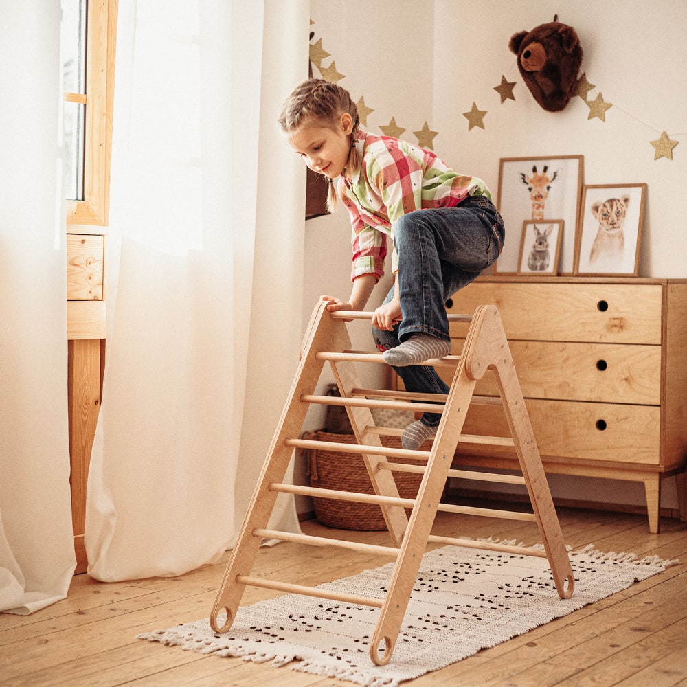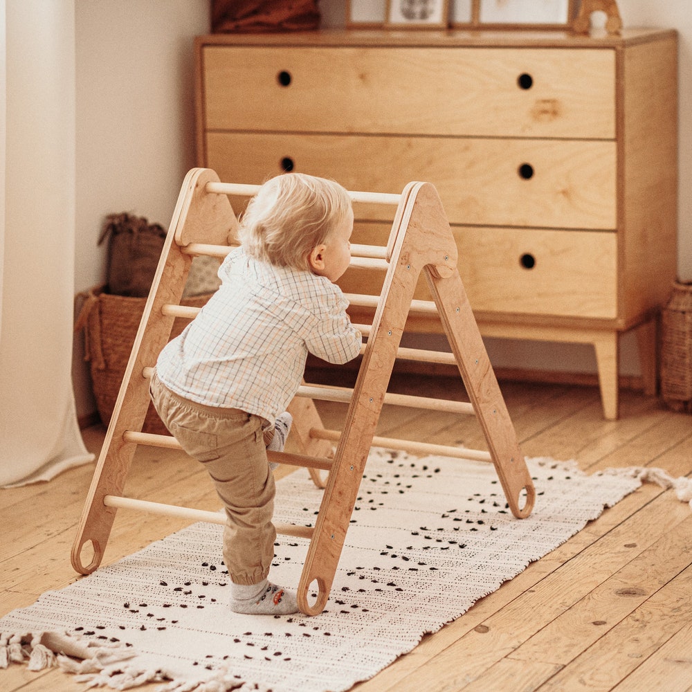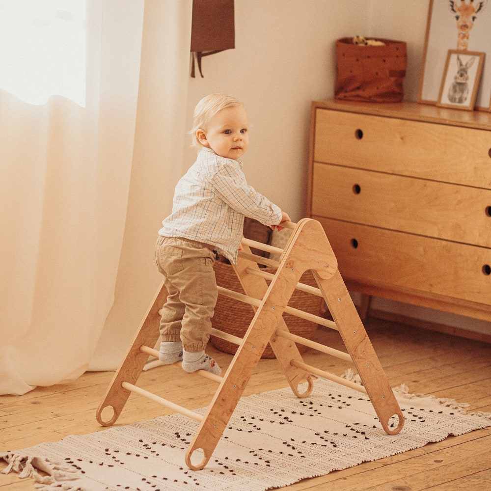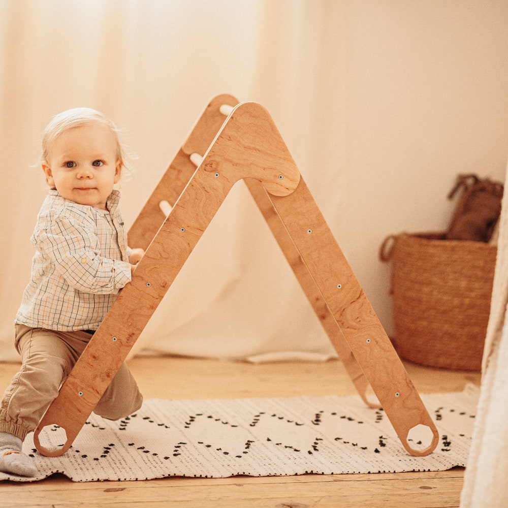 Foldable Climbing Triangle – Montessori toddler climber, Wood play gym, Wooden Kids playground