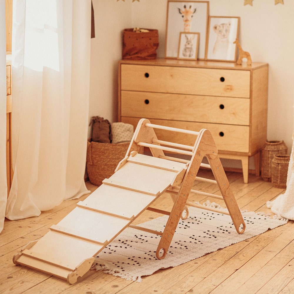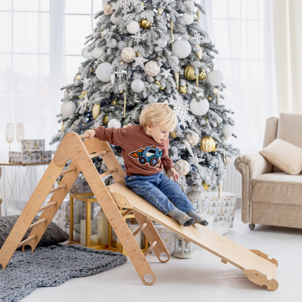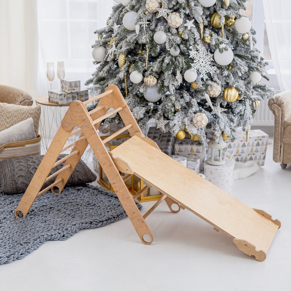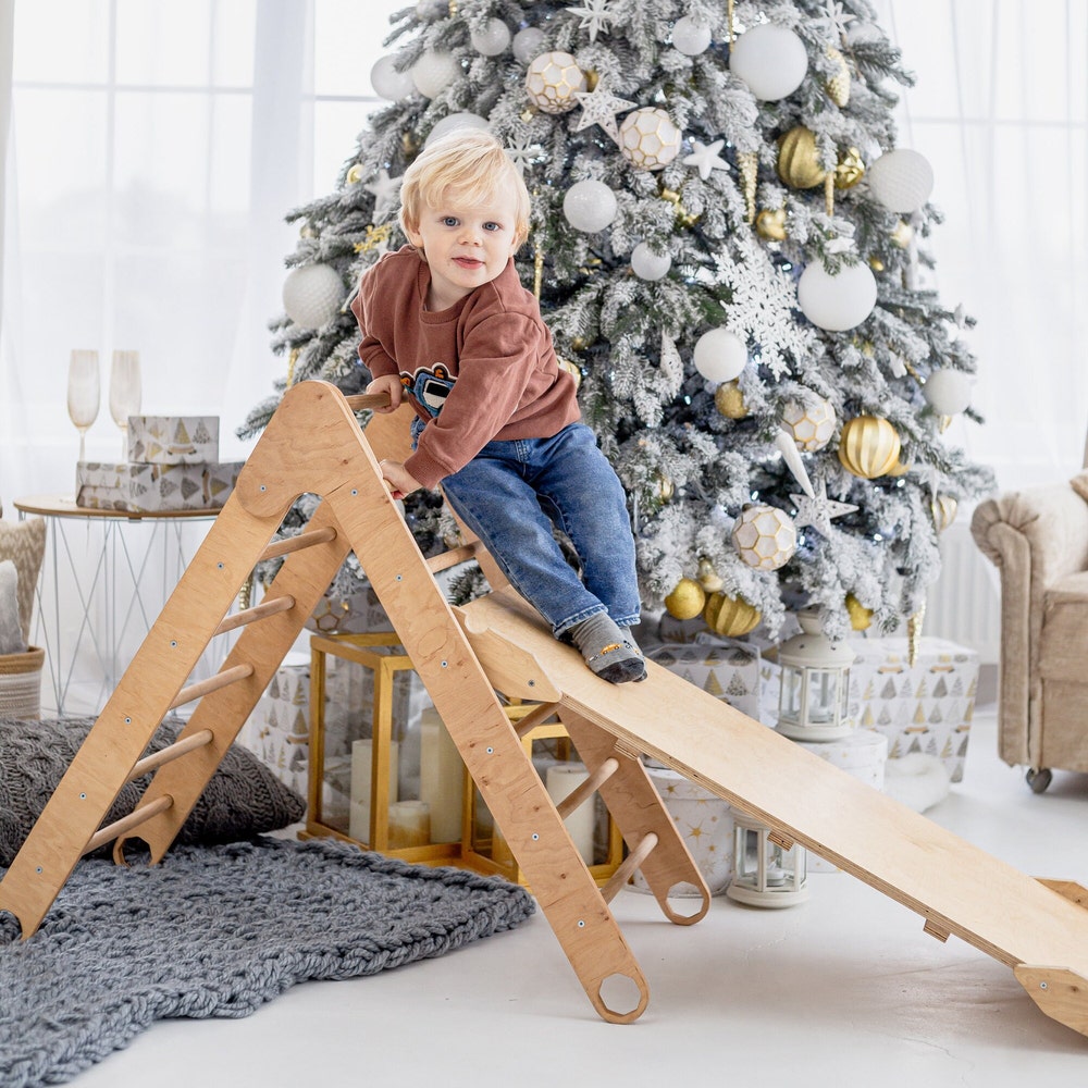 Foldable Climbing Triangle with slide, Toddler playroom, Montessori furniture, Indoor playground, First Christmas Gift, Wooden play gym