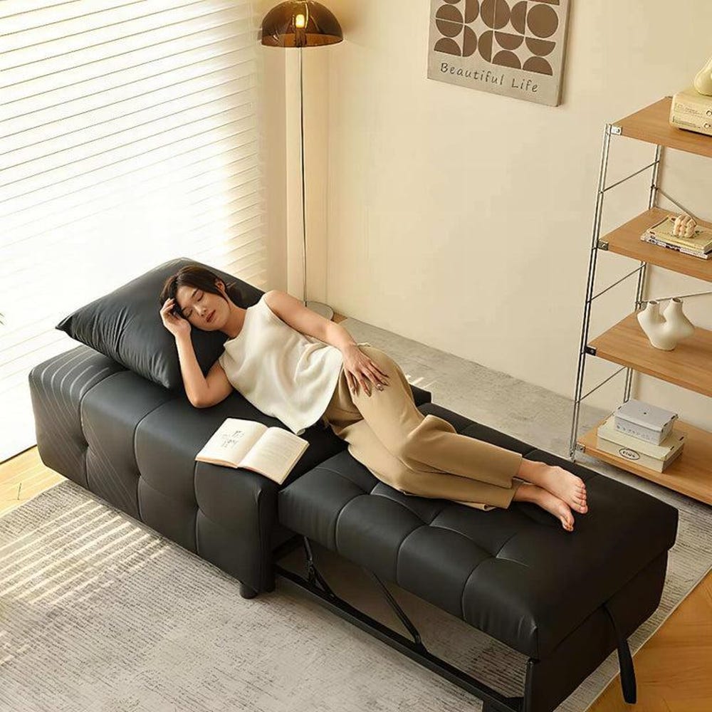 Reimagine comfort with this Foldable Sofa, a versatile piece that transforms effortlessly between a compact sofa, extended leg rest, and full bed. Upholstered in sleek, eco-friendly leather, it brings modern luxury to small spaces, guest rooms, or minimalist interiors.