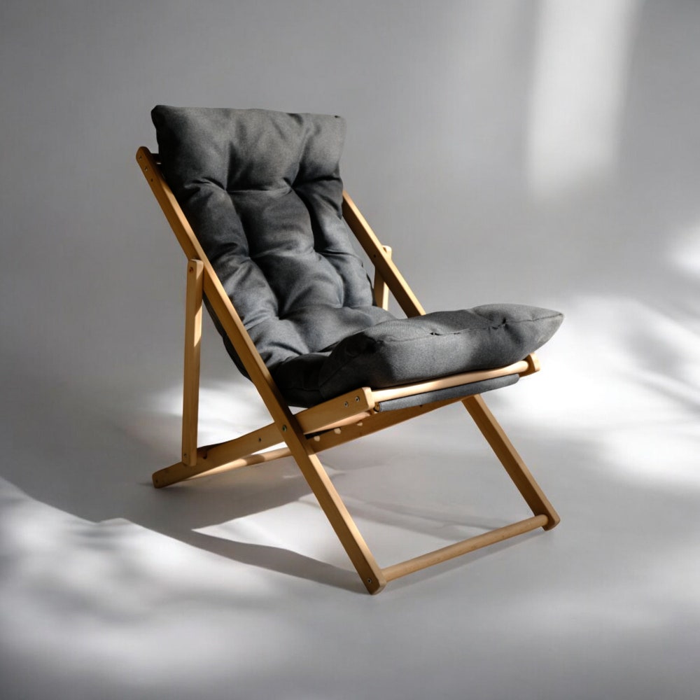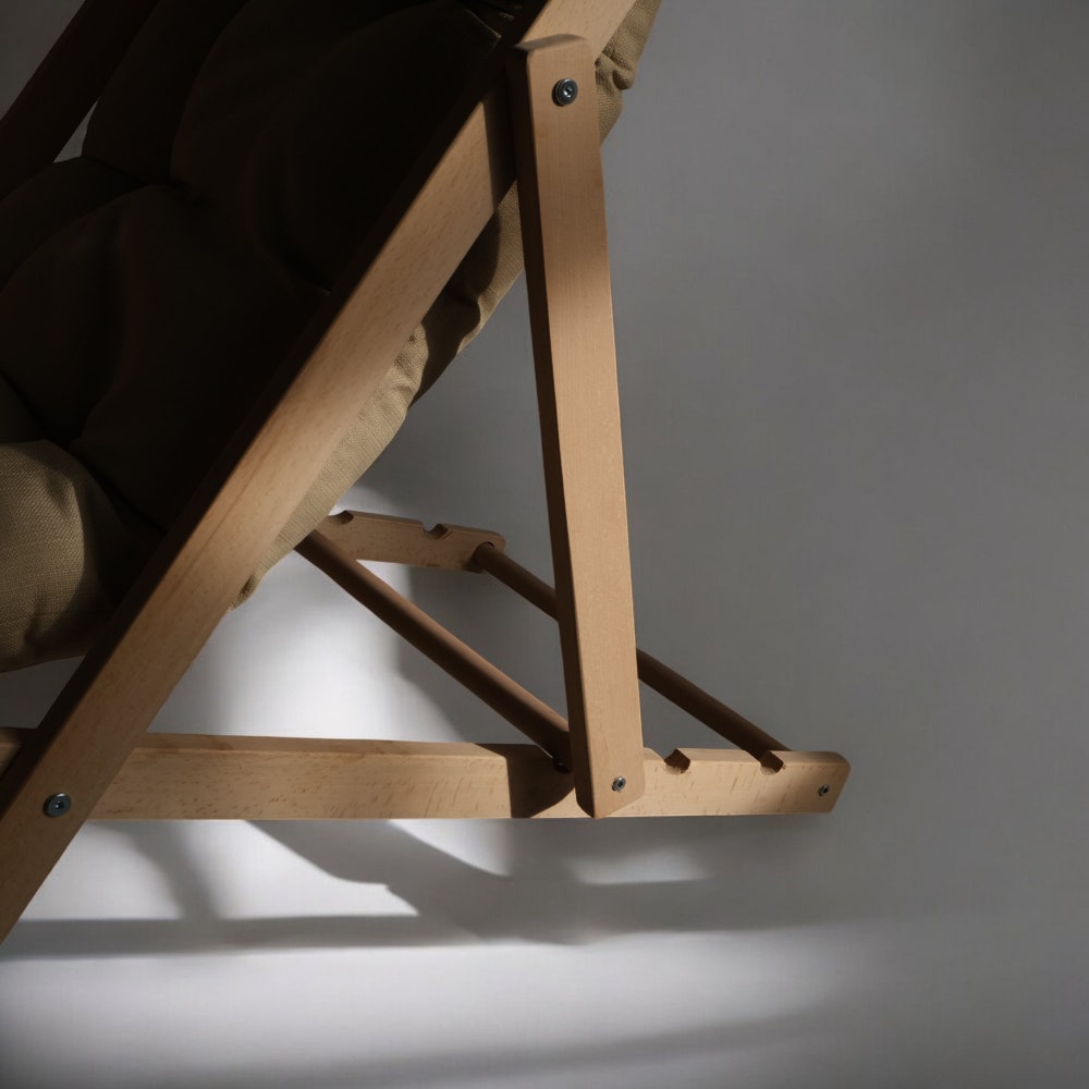 🌟 Introducing our handcrafted wooden sun lounger – the perfect addition to any garden, patio, or poolside. Designed to offer the ultimate relaxation experience, this elegant chaise lounge chair masterfully combines functionality with a touch of rustic charm. Our folding deck chair is your new companion for outdoor comfort and style. The sturdy frame is complemented by a plush, water-repellent cushion that invites you to indulge in comfort without concern — perfect for poolside reading or soaking up the sunshine on your patio.