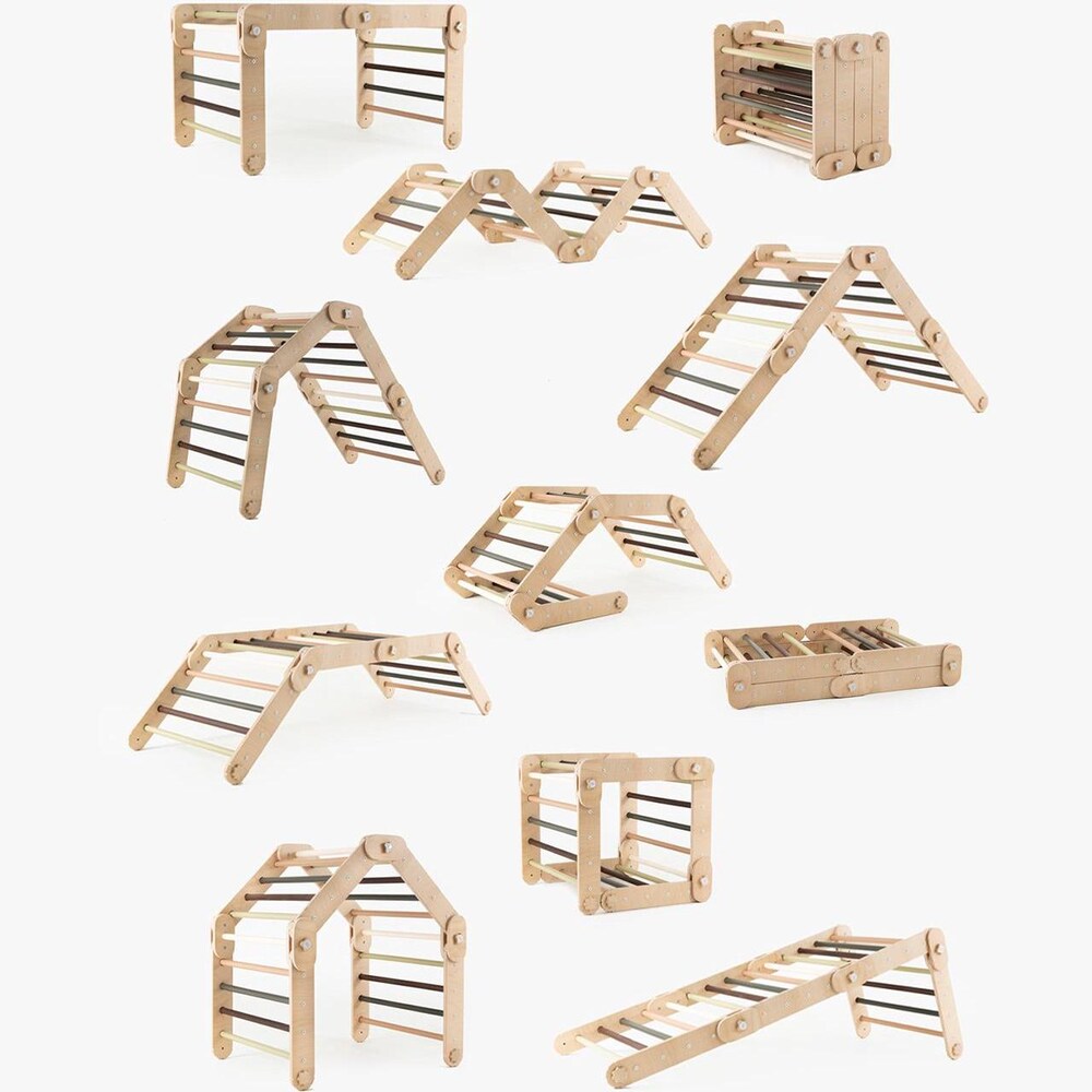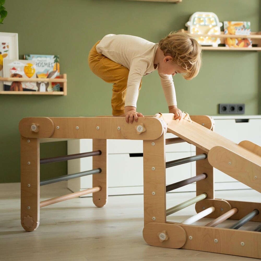 It is lower and safer than the traditional climbing triangle. It grows along with the child and his climbing skills.