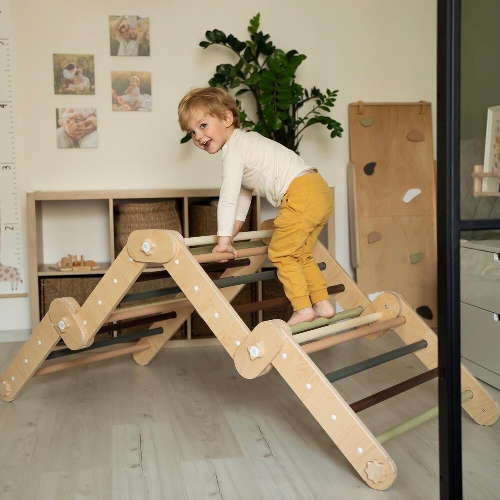 Forest Climber: Montessori Wooden Triangle Gym for Toddlers – Indoor Playground Equipment