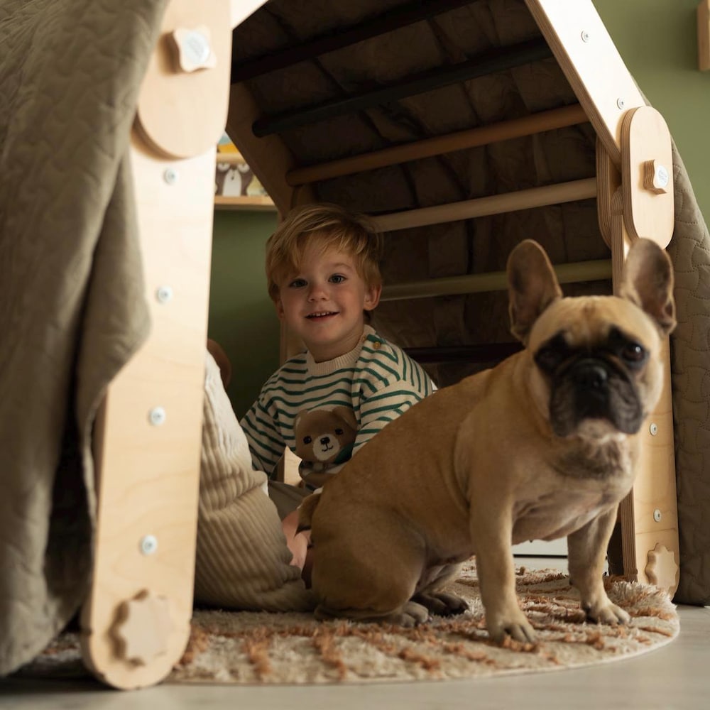 An adjustable climbing frame or climbing triangle will be perfect training and play toy.