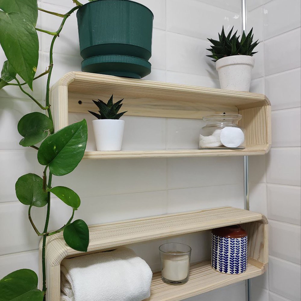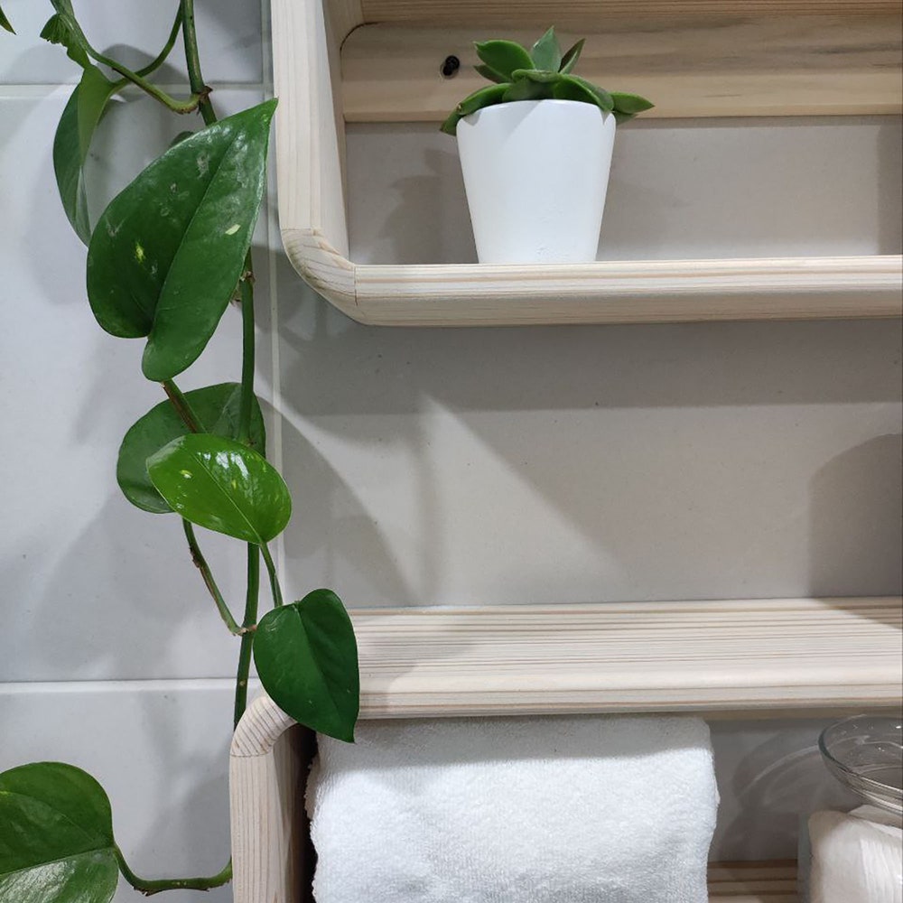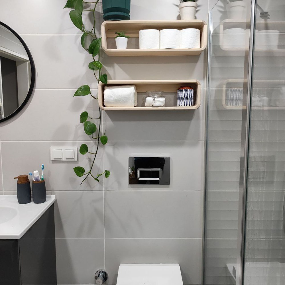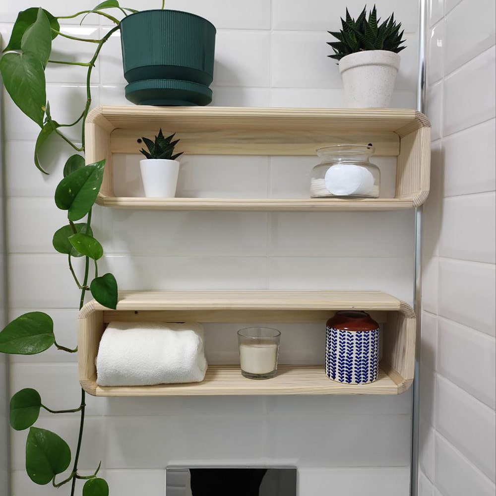 With these handmade wooden shelves, you will be able to store many of the materials you use in your bathroom here. If you install it on the base above your toilet, it will provide an incredible space saving for small bathrooms.
