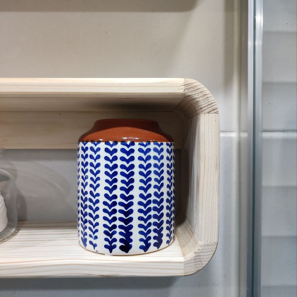 The corners of our shelf are handmade ovalized.