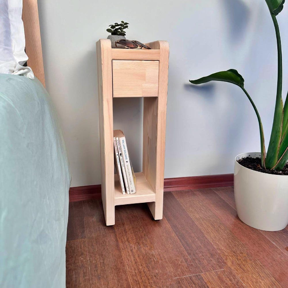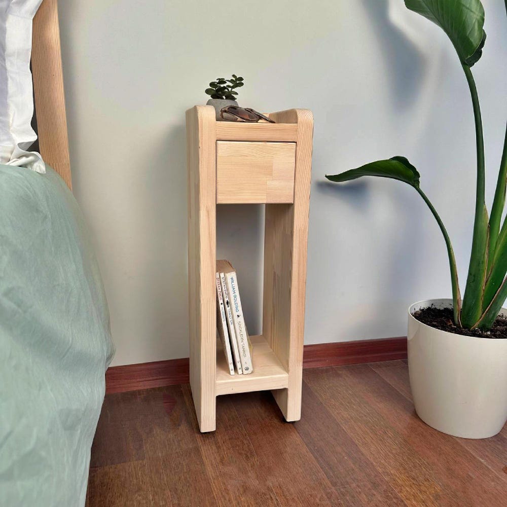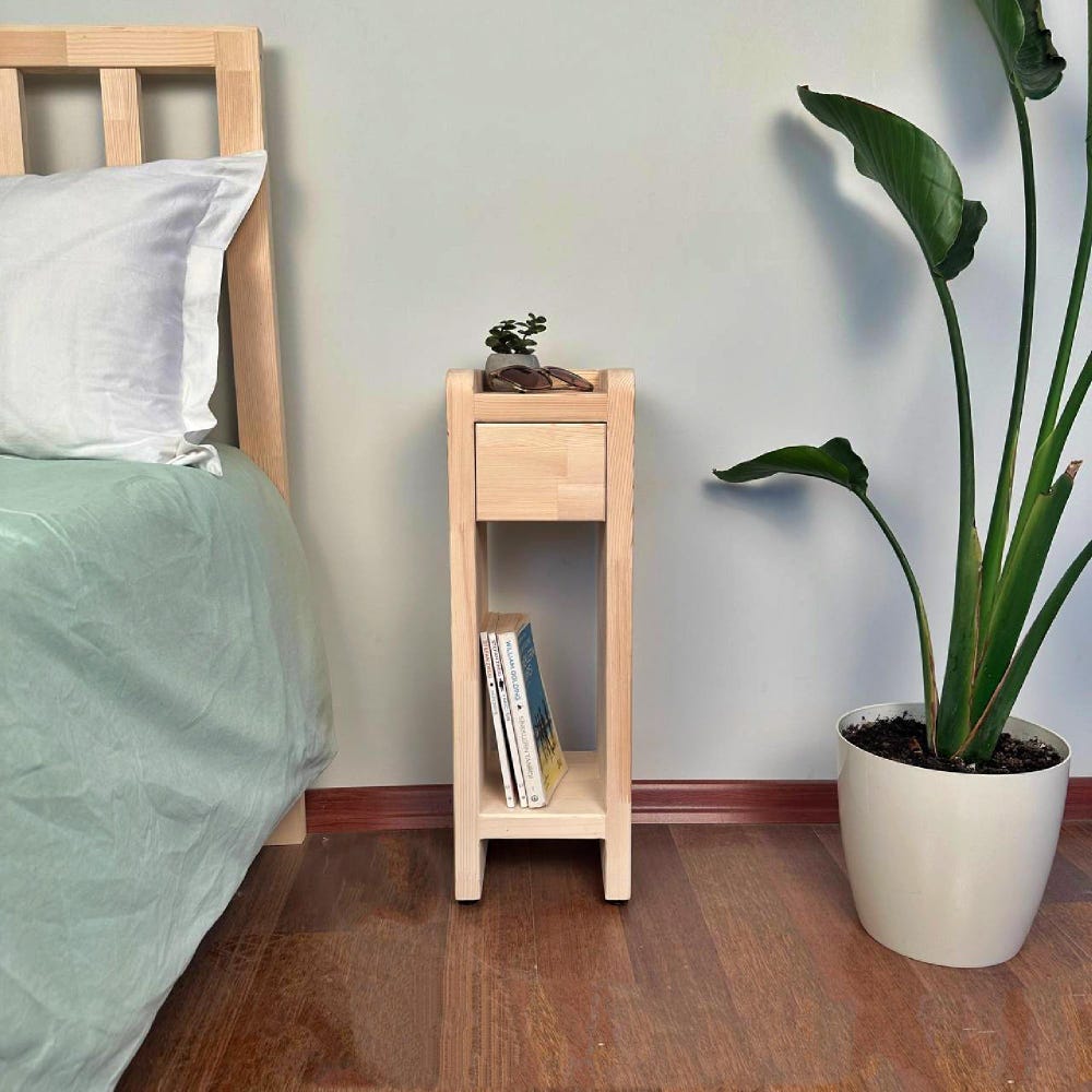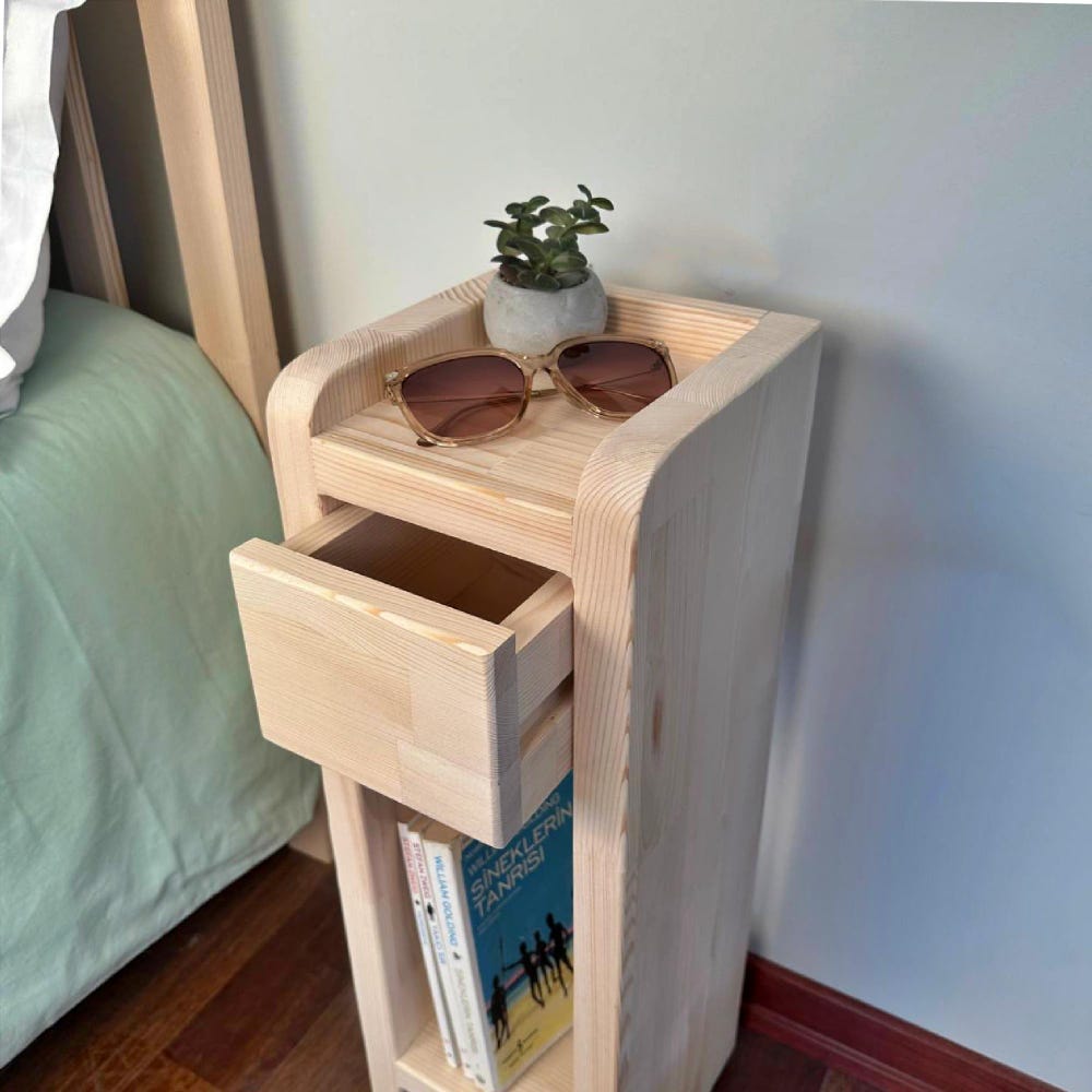 Thanks to its minimal but useful drawer, you can put your jewelry, wallet, glasses and watch inside and use them practically whenever you want.