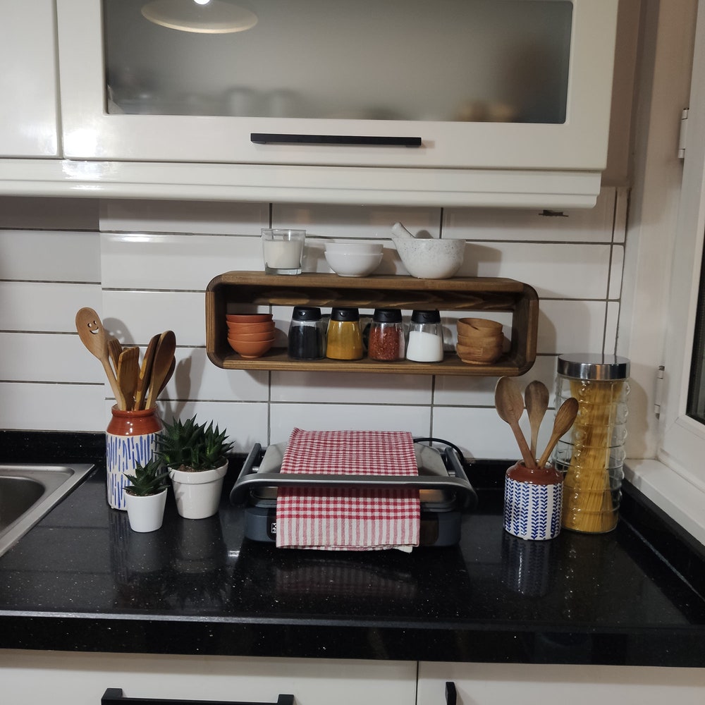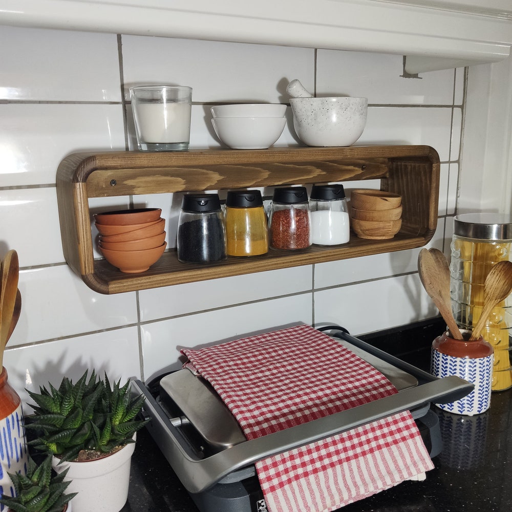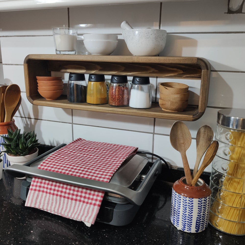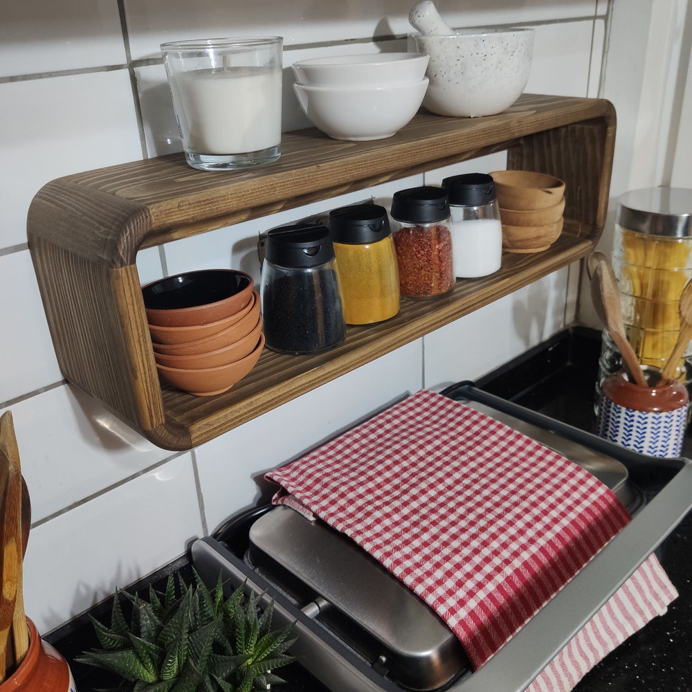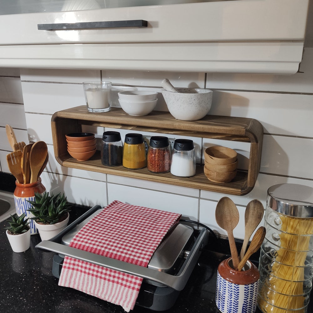 This oval kitchen shelf with handcrafted edges has been meticulously designed to save space in your kitchen and create an eye-catching look. Create a display that is not only striking but also highly functional, adding color to your cooking routine!