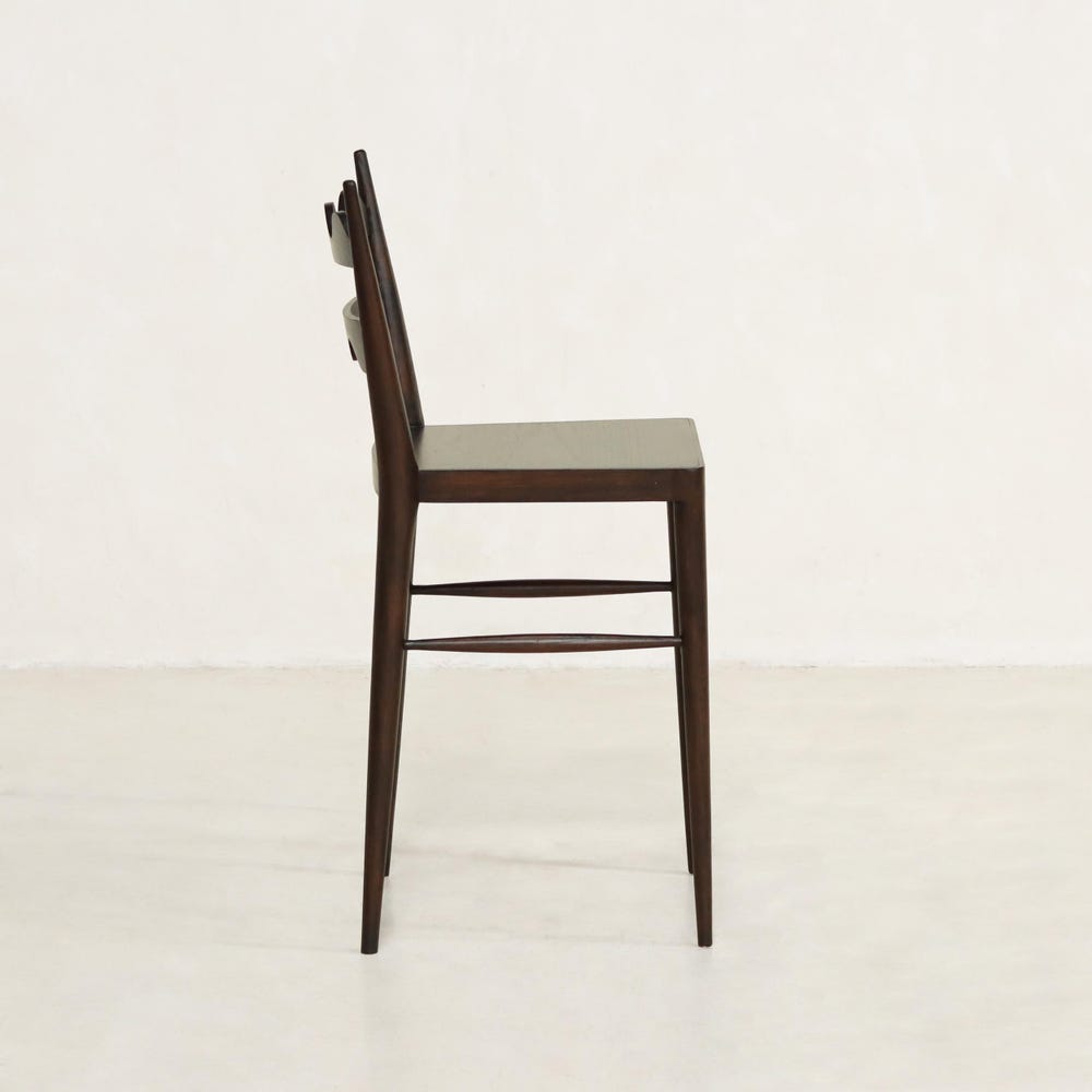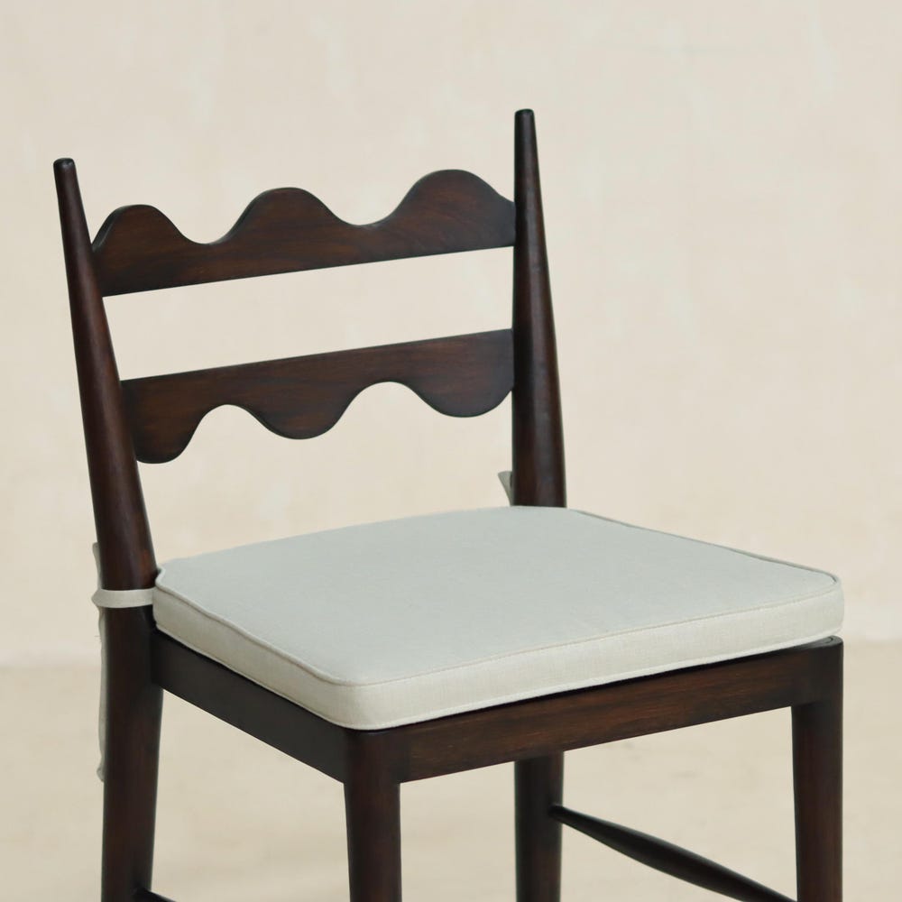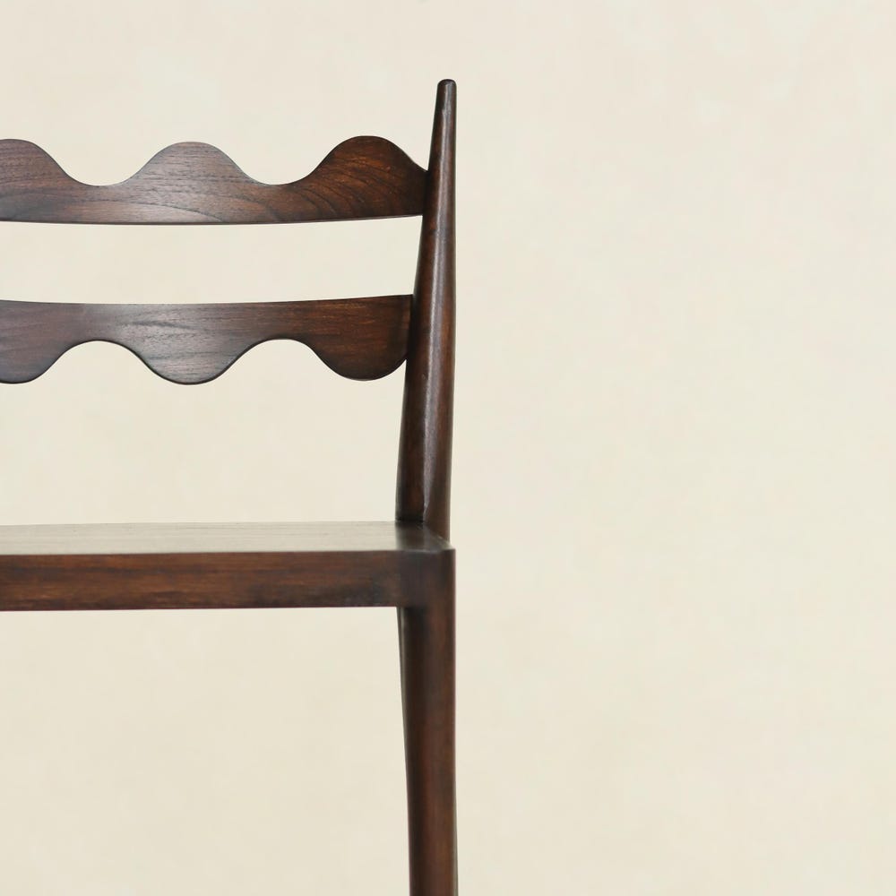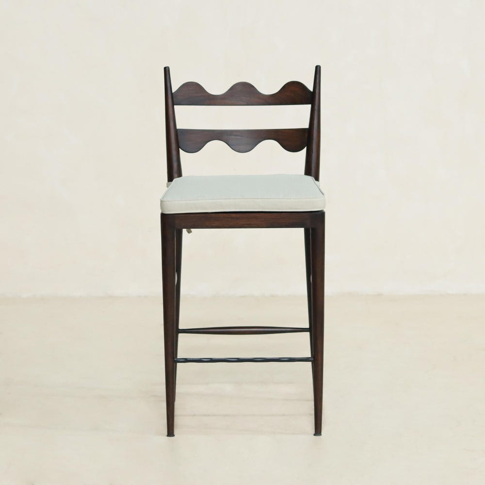 Introducing the TreeHause Wave Counter Stool, where artistry meets functionality. The signature wavy ladder-back design with dual horizontal slats creates an immediate visual impact, while clean, tapered legs add architectural elegance. Meticulously handcrafted by skilled artisans using premium wood, each chair is a testament to superior craftsmanship. The rich dark finish highlights the natural grain, making every piece uniquely beautiful. With its solid wooden seat and sophisticated silhouette, this chair transforms any space into a design statement.