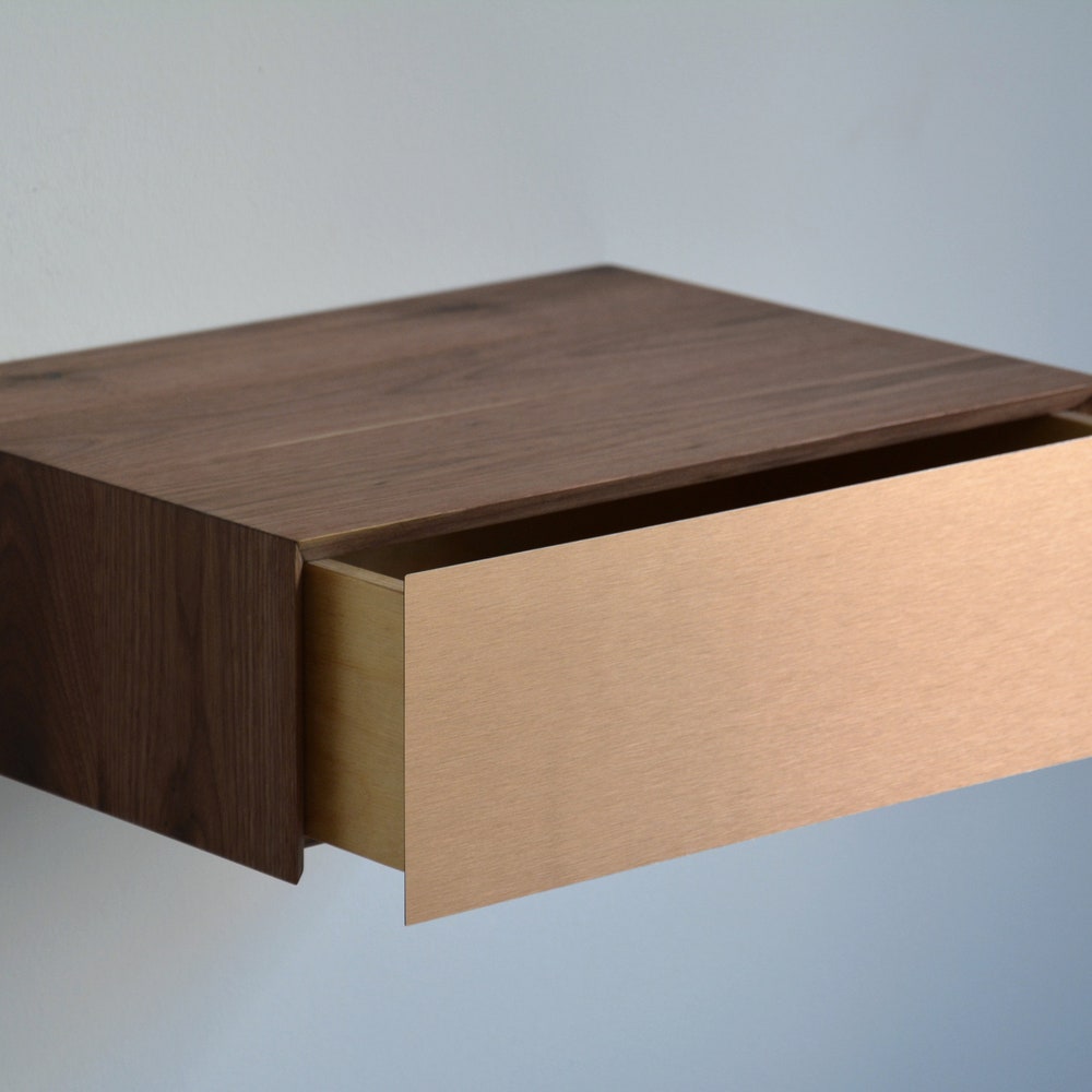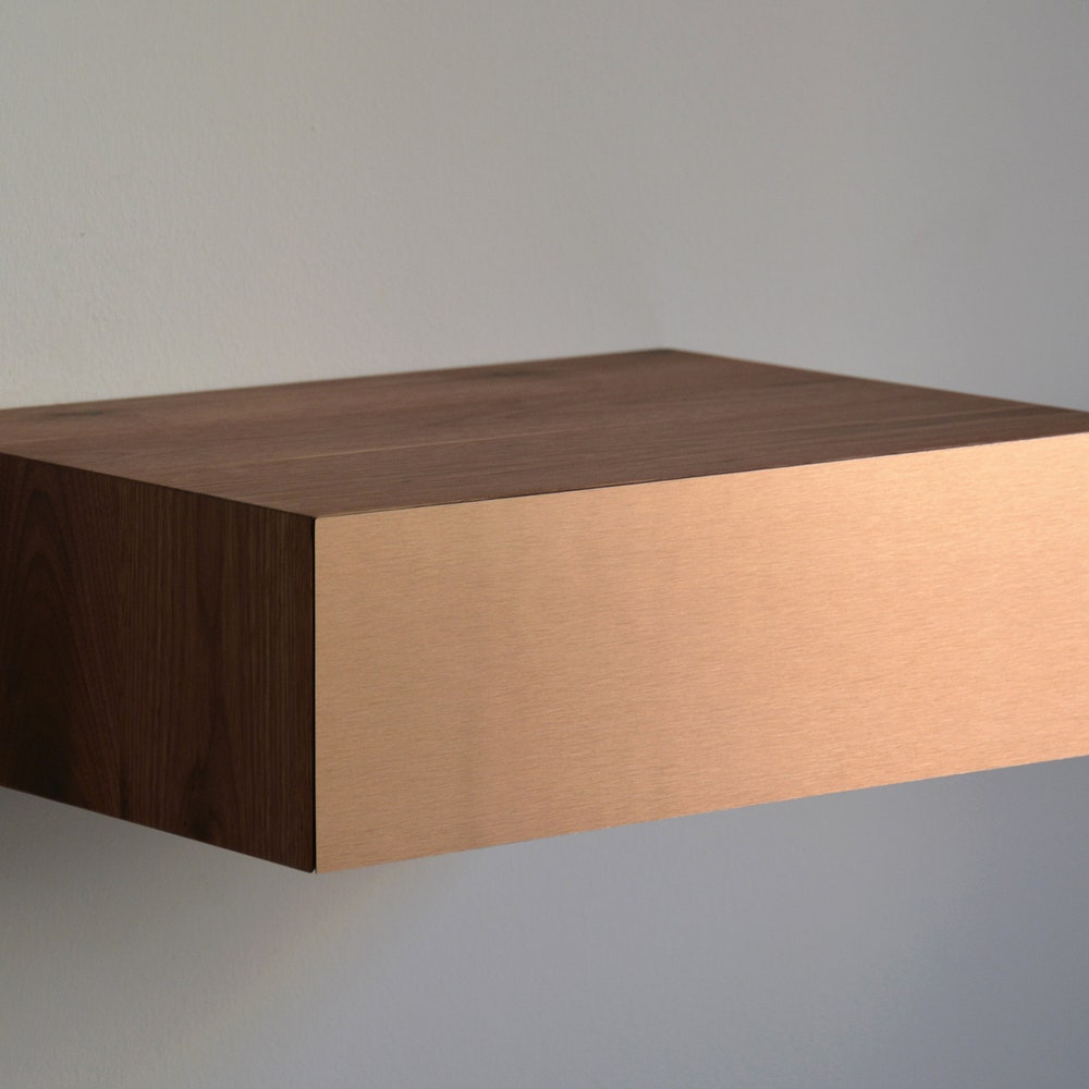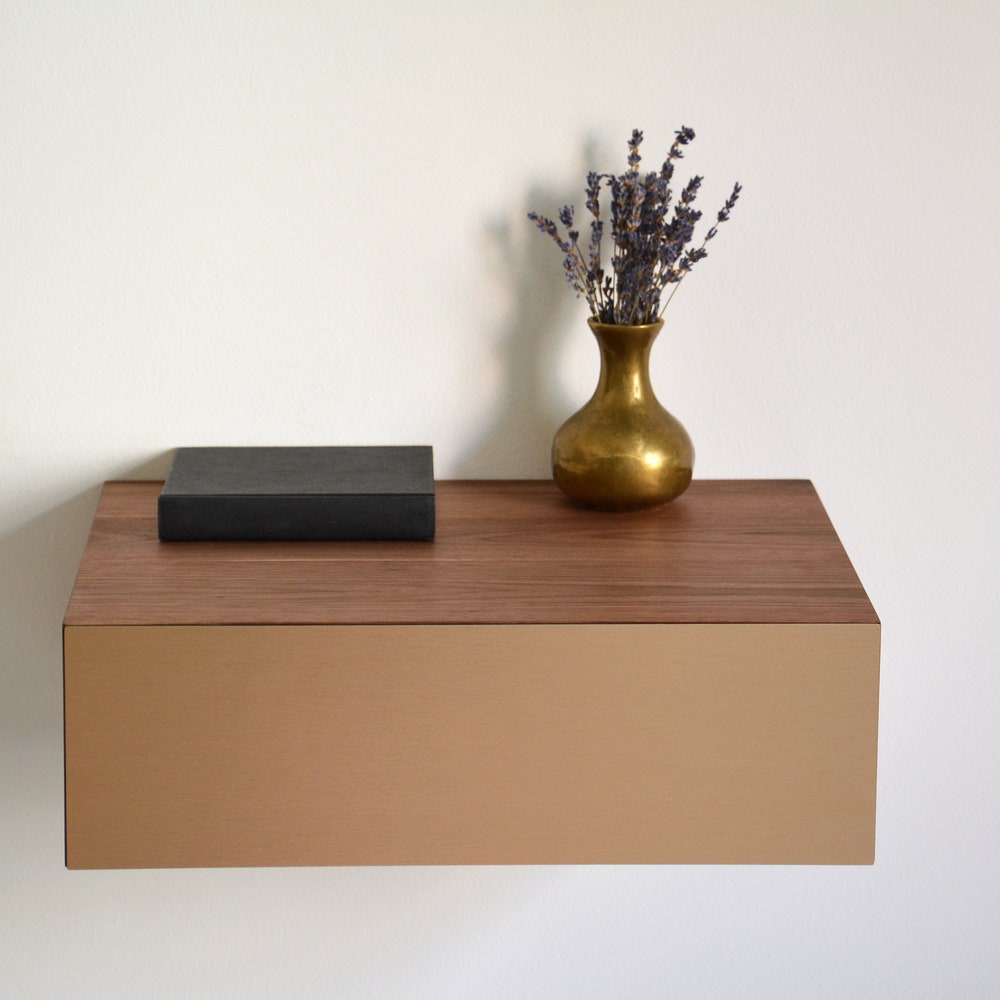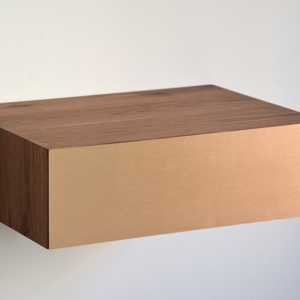 From stock! / Minimalist walnut floating nightstand with COPPER drawer | medium size