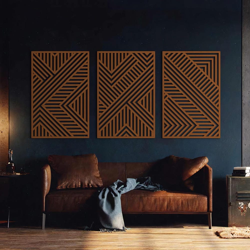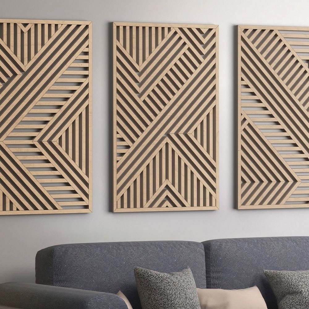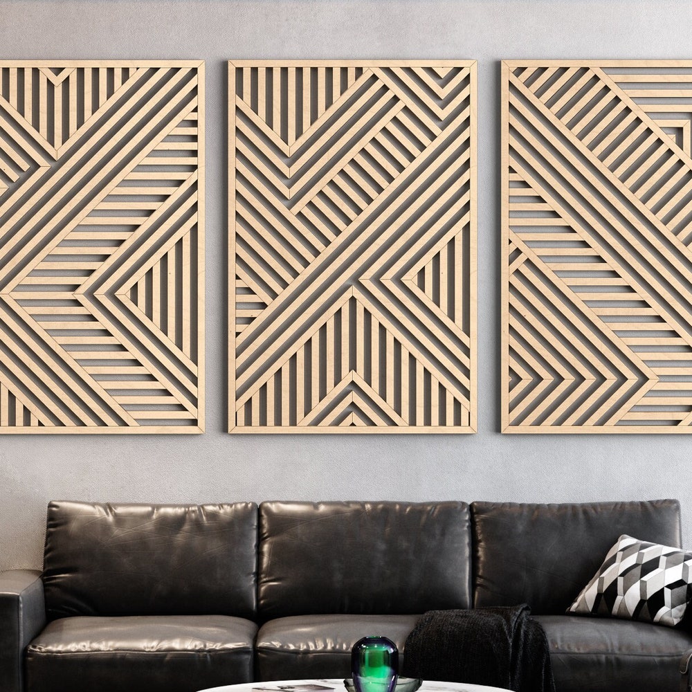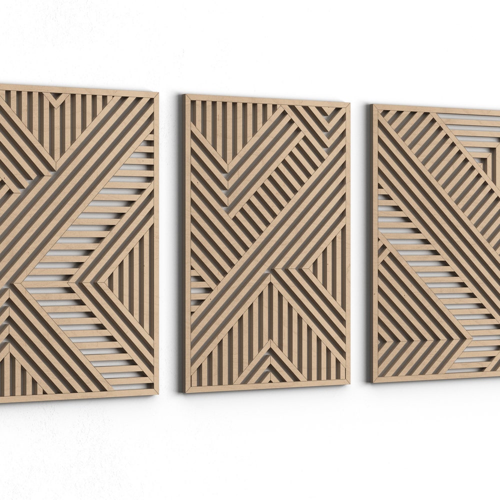 Geometric Wood Wall Art | Modern Wood Wall Art Set | Abstract Wooden Wall Panels | Set of 3 | Wood decor | Large Wood Wall Art