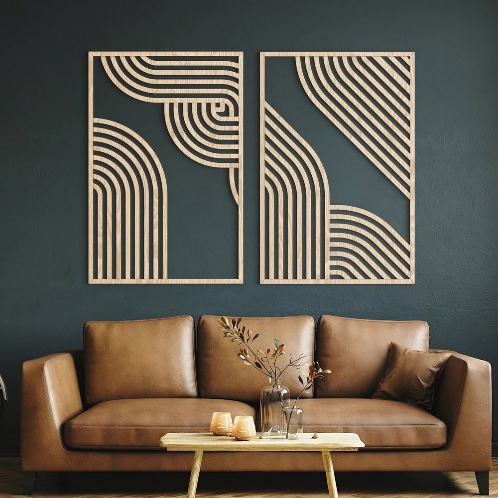 Geometric Wood Wall Art | Modern Wood Wall Art | Wall Hangings | Set of 2 wall art | Boho Wall Art | Living room decor |Extra Large Wall Art