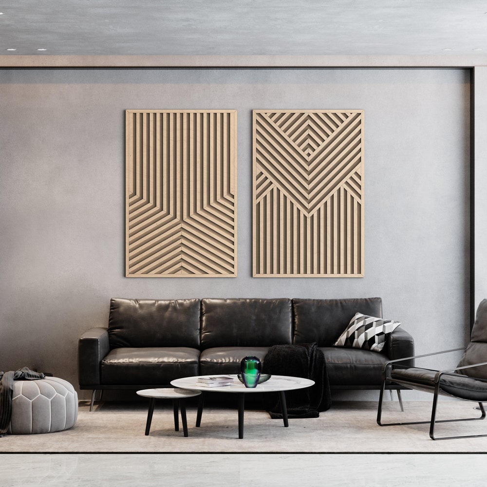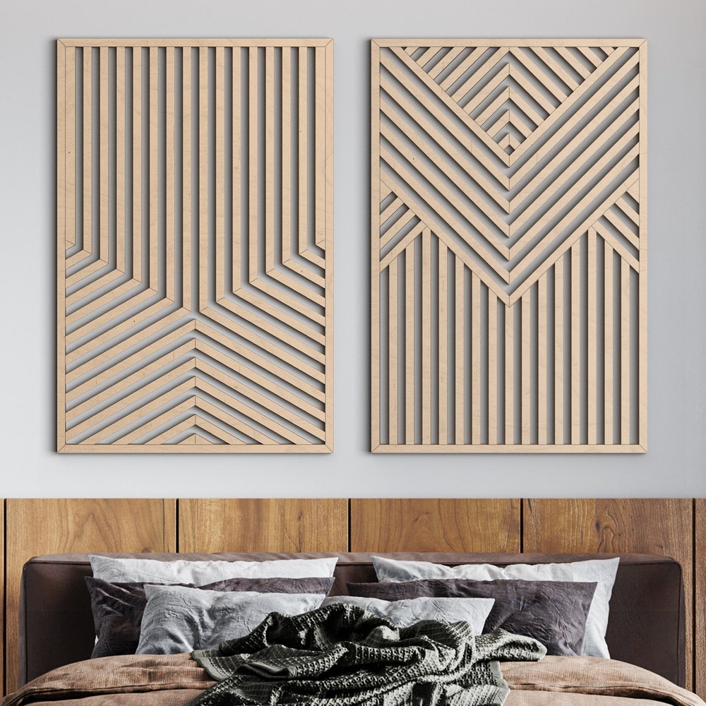 Geometric Wood Wall Art Set | Set of 2 wall art | Wooden wall art | Abstract Wood Wall Art | Modern Wood decor | Extra Large Wall Art