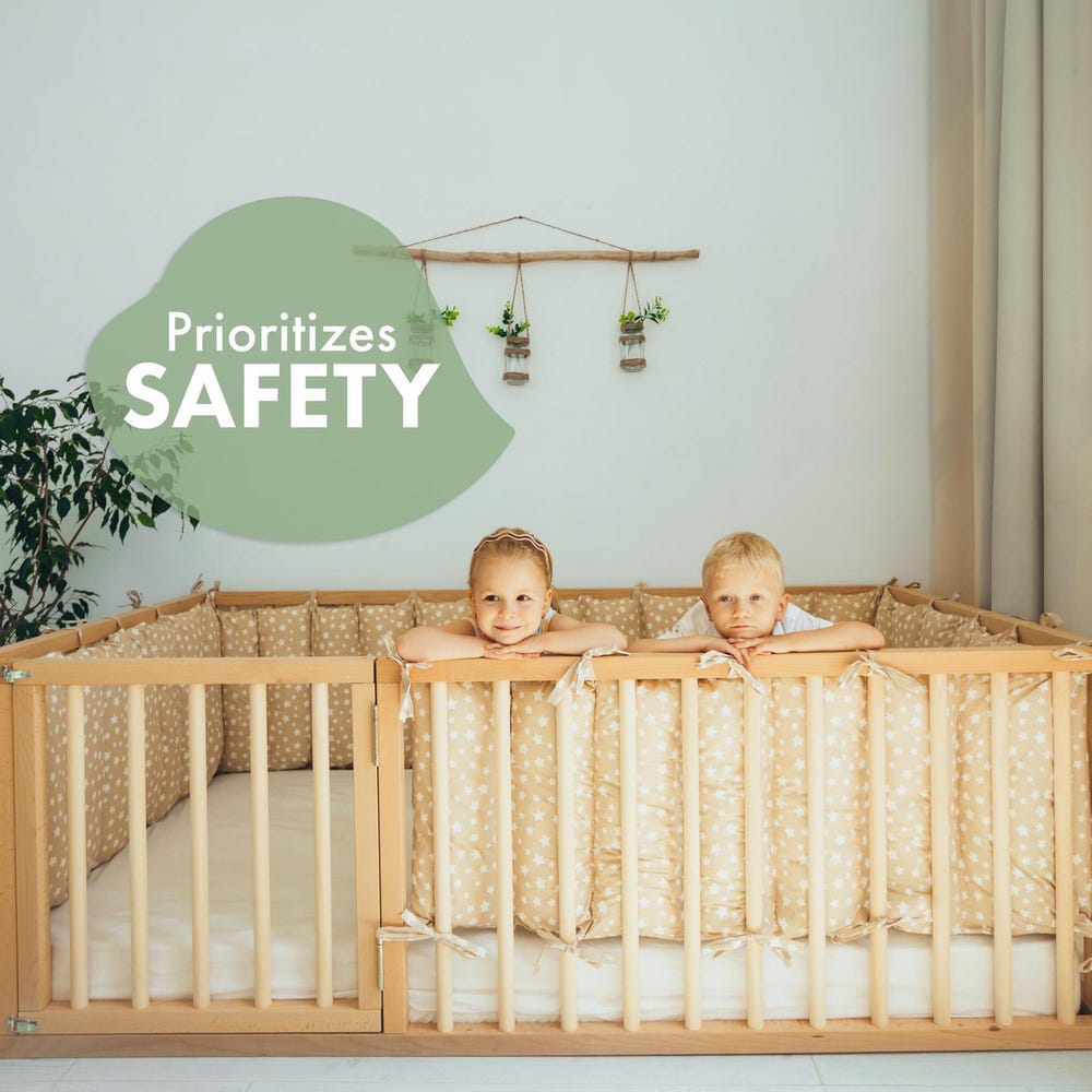 The Goodevas playpen is a safe and fun space where children can explore and play at their own pace. Inspired by Montessori principles, this playpen allows little ones to understand their physical boundaries and respond to their movement needs. Promotes free movement and encourages independent play. Designed with safety and development in mind, it provides the ideal environment for your baby’s development.