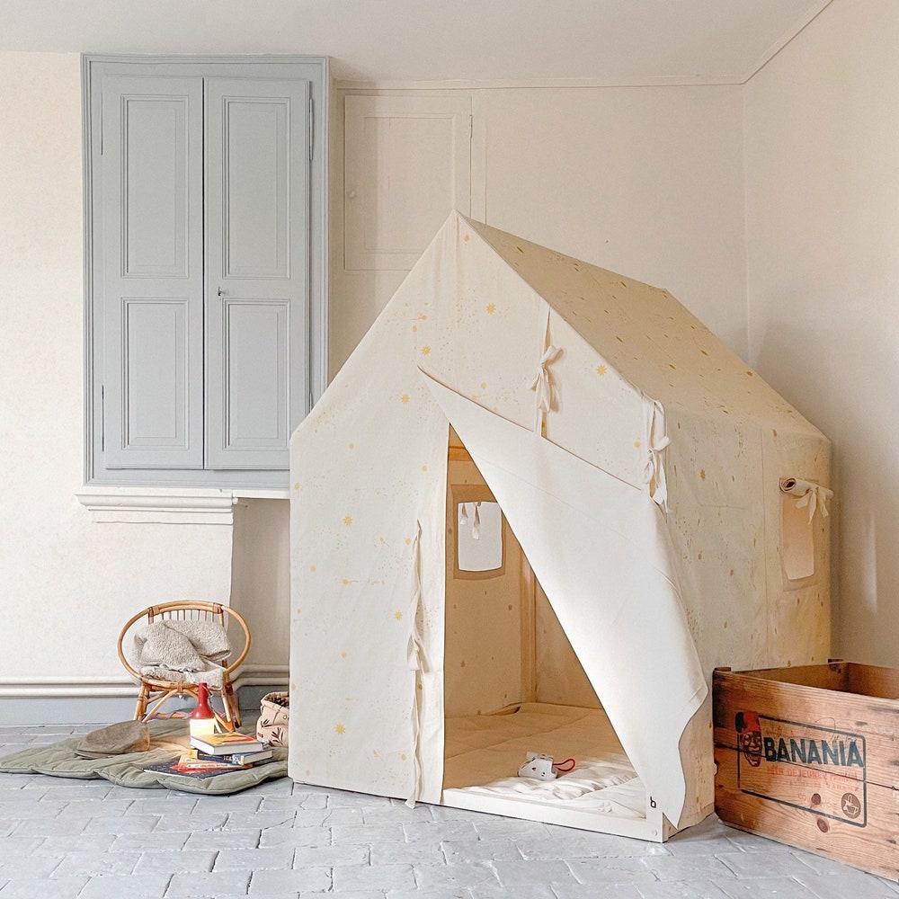 Golden stars teepee tent, playhouse mat , hand print teepee