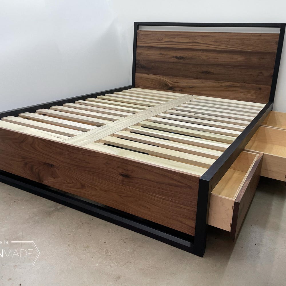 Gorgeous Platform Storage Bed Frame with Drawers, Wooden Platform Bed, Solid walnut, Wooden storage bed frame, wooden bedroom set