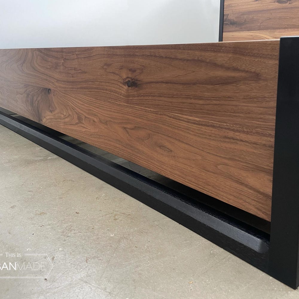 Bed Frame King Gift for Couple – Walnut Patchwork Floor Bed for Bedroom Decor – Platform Bed Frame Handmade Furniture – Queen Bed Frame