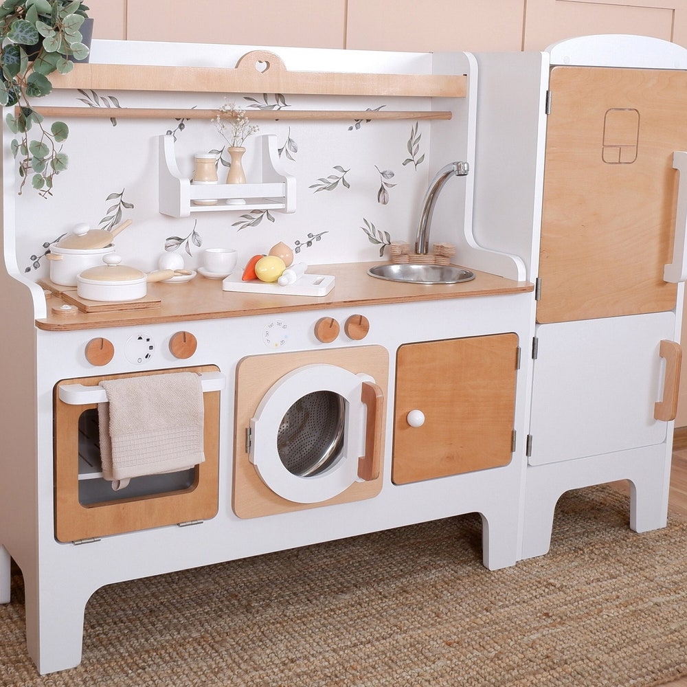 Handcrafed Wooden Play Kitchen | White and Natural | Customizable | Play Area Pretend Play Toys
