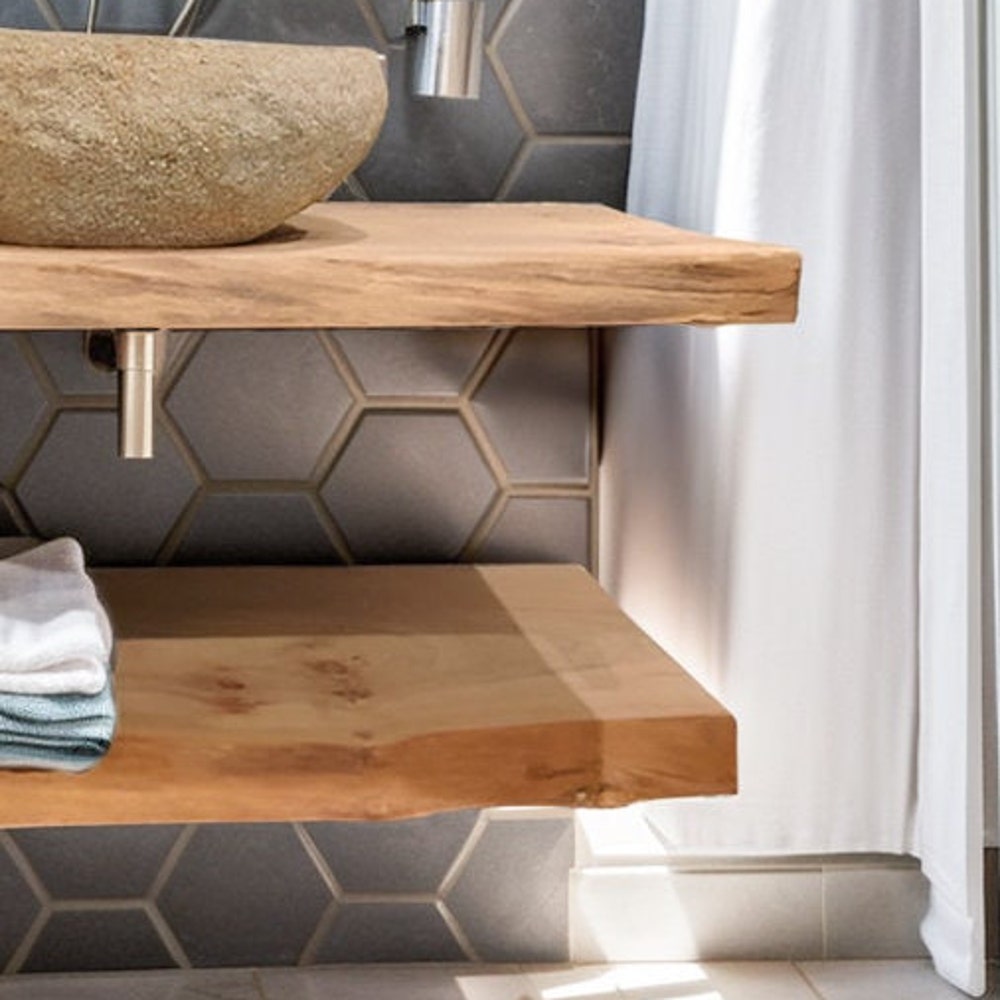 Handcrafted Bathroom Rustic Floating Vanity with Reclaimed Wood, Custom Natural Bathroom Sink Vanity, Live Edge Shelf Vanity, Gift for Her