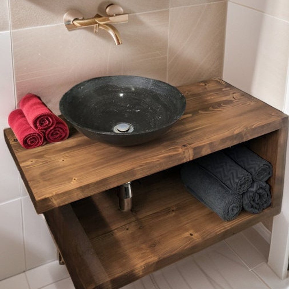 Handcrafted Bathroom Rustic Floating Vanity with Reclaimed Wood, Custom Natural Bathroom Sink Vanity, Live Edge Shelf Vanity, Gift for Her