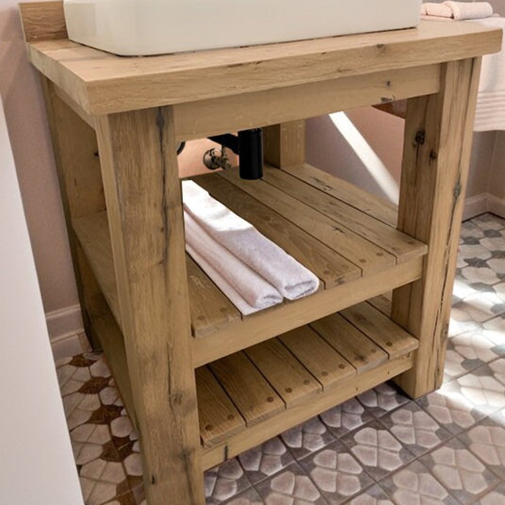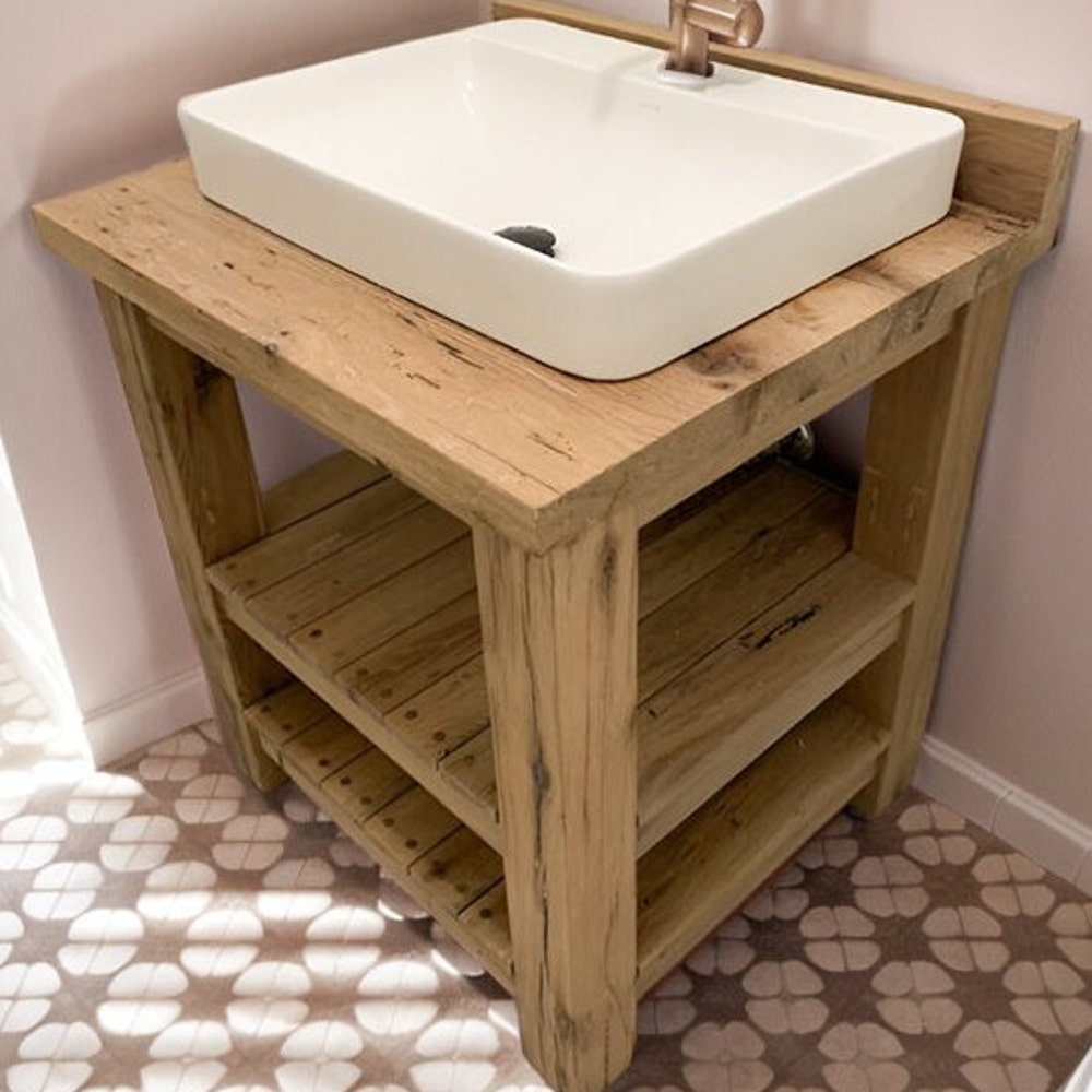 Handcrafted Bathroom Rustic Vanity with Oak Wood, Sink Vanity with Double Drawers, Solid Farmhouse Decor for Your Bathroom Countertop