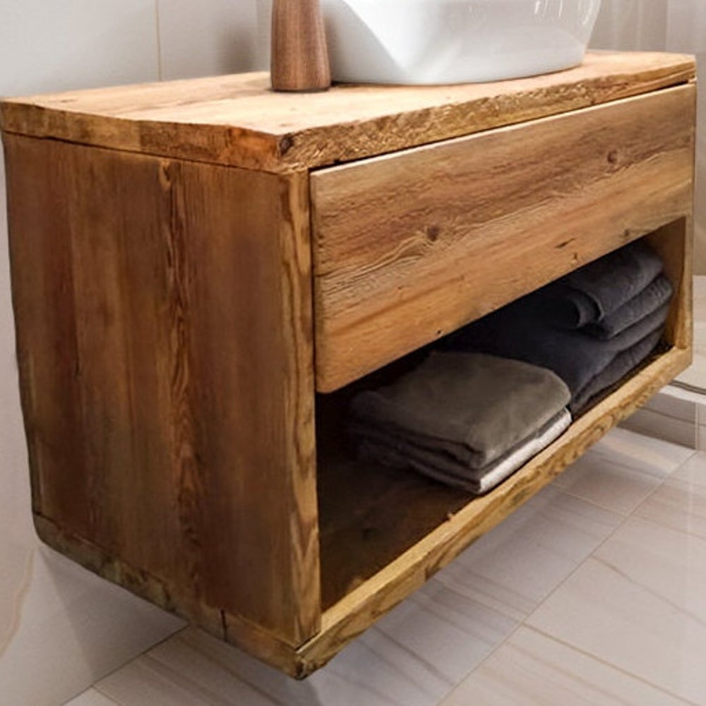 Handcrafted Bathroom Rustic Vanity with Reclaimed Wood – Floating Solid Farmhouse Decor for Your Bathroom Countertop, Gift for Her/Woman