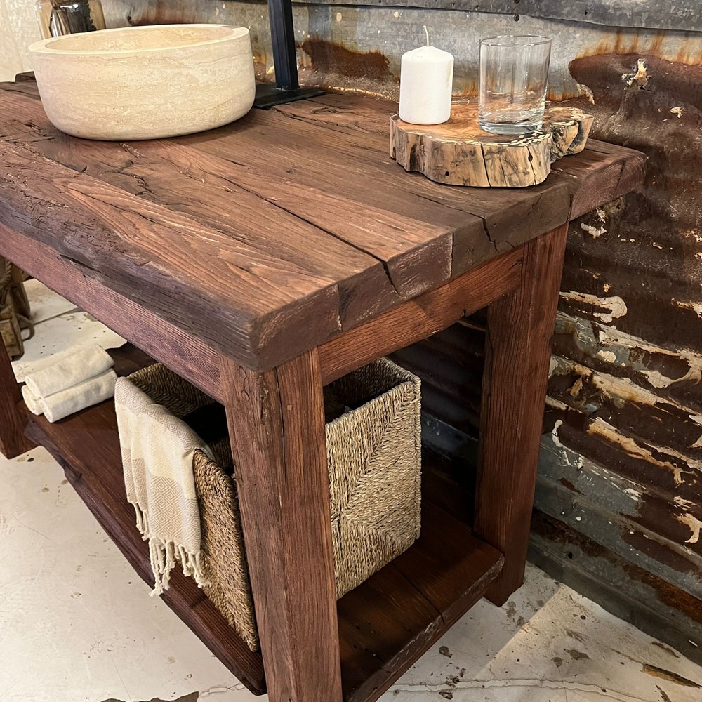 Handcrafted Bathroom Rustic Vanity with Reclaimed Wood – Solid Farmhouse Decor for Your Bathroom Countertop, Gift for Her/Woman