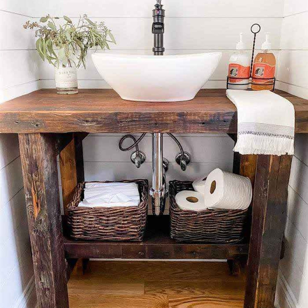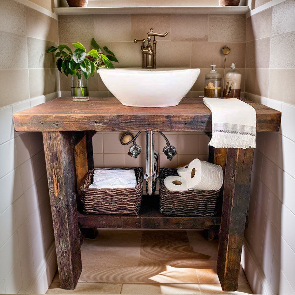 Handcrafted Bathroom Rustic Vanity with Reclaimed Wood – Solid Farmhouse Decor for Your Bathroom Countertop, Gift for Her/Woman