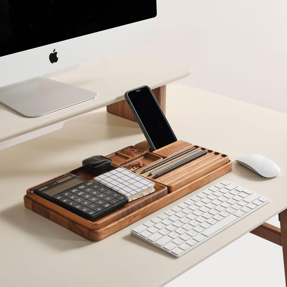 Handcrafted Beech Wood Phone Stand, Minimalist Desk Organizer for Modern Offices, Unique Handmade Gift for Workspace Storage & Decor, Gift