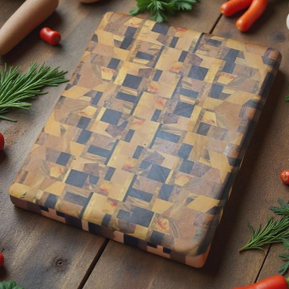 Handcrafted Chaos Pattern End Grain Cutting Board – Unique and Durable Kitchen Essential
