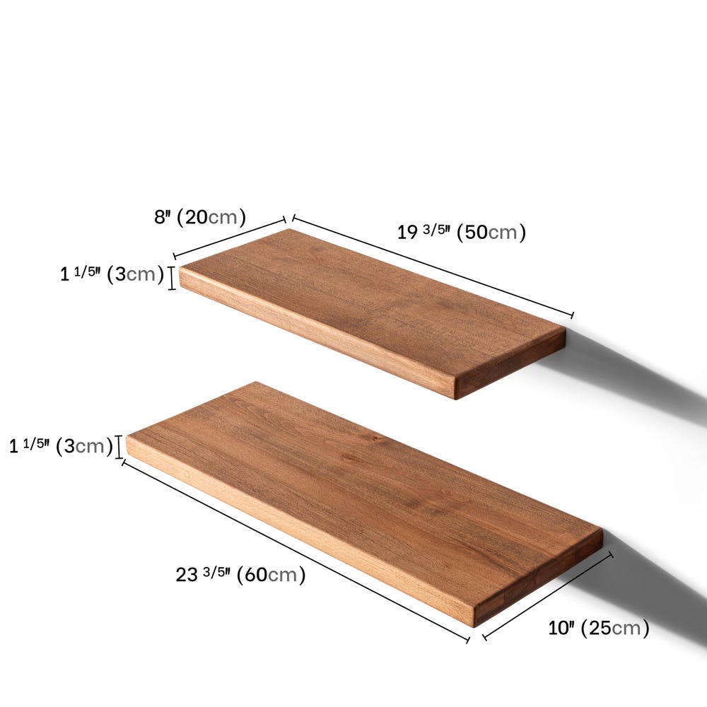 Shelf 1: Length: 20″ (61 cm) | Depth: 8″ (20 cm) | Thickness: 1.2″ (3 cm)​