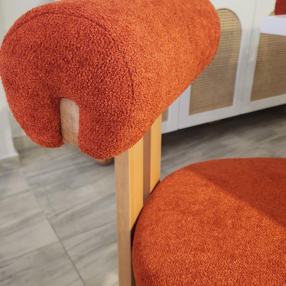 Handcrafted Mid Century Modern Wooden Dining Chair with Burnt Orange Upholstery – Unique Designer Accent Chair