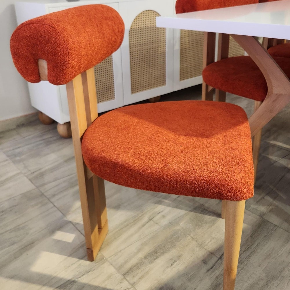 This chair isn’t just furniture—it’s a statement piece. Whether you’re revamping your dining space or looking for a one-of-a-kind accent chair, this handcrafted design offers both comfort and timeless appeal. The high-quality wooden legs and plush upholstery provide lasting durability, while the modern structure complements a variety of interiors.