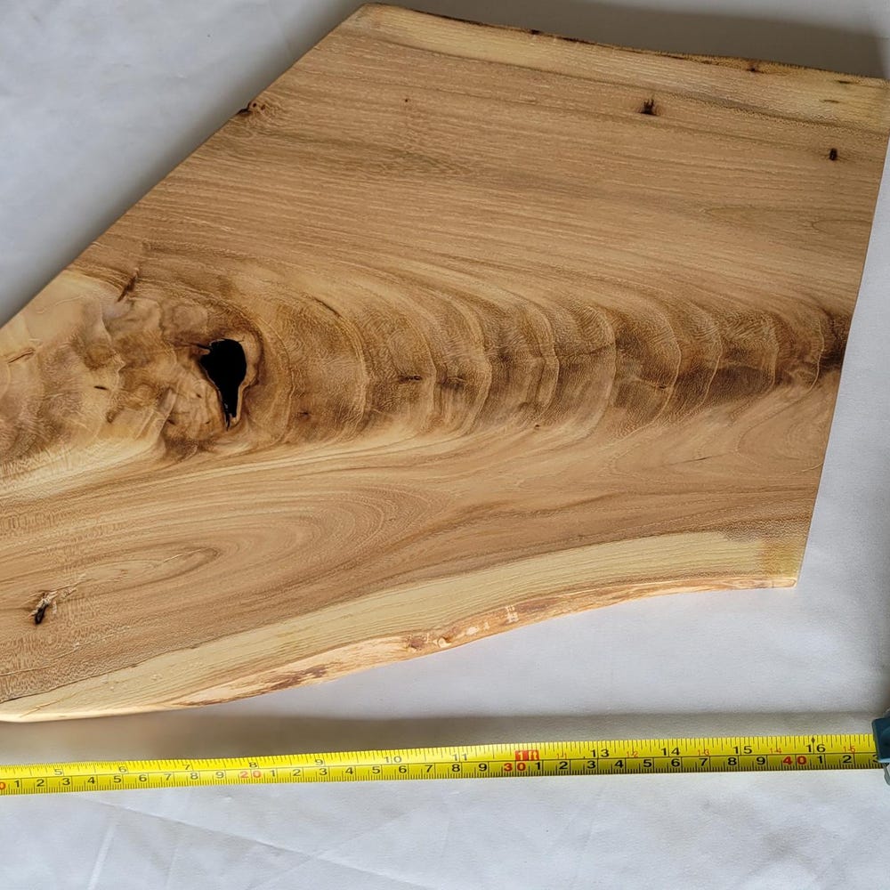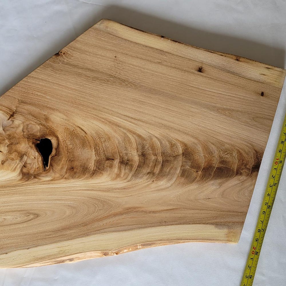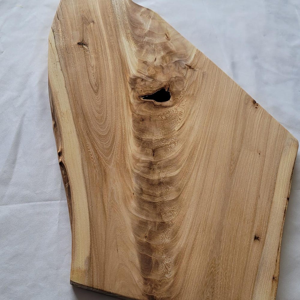 Unveil the elegance of natural wood at your next gathering with this meticulously handcrafted ash charcuterie board. Celebrated for its robustness and delightful grain patterns, ash wood presents a light to medium hue that enriches any table setting. This board features a unique, naturally occurring knot filled with a clear epoxy resin, enhancing its aesthetic appeal while ensuring a smooth, food-safe surface.