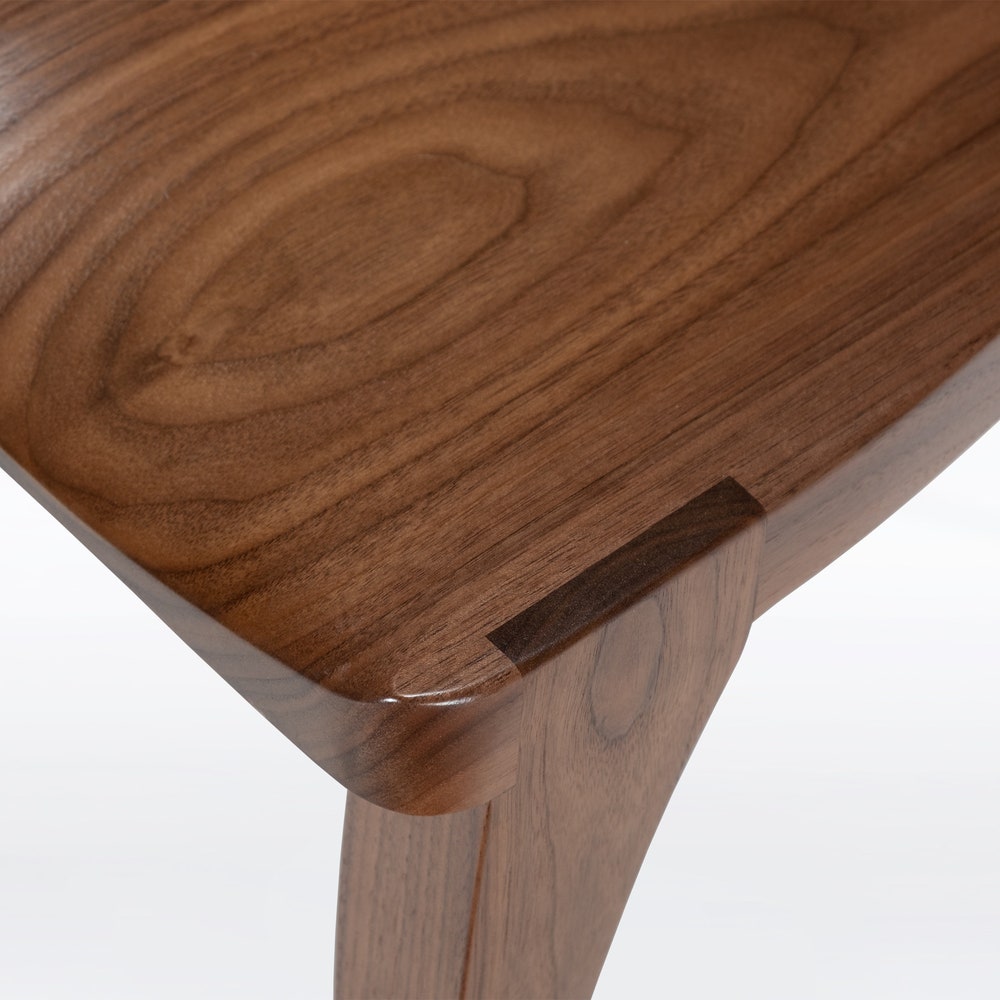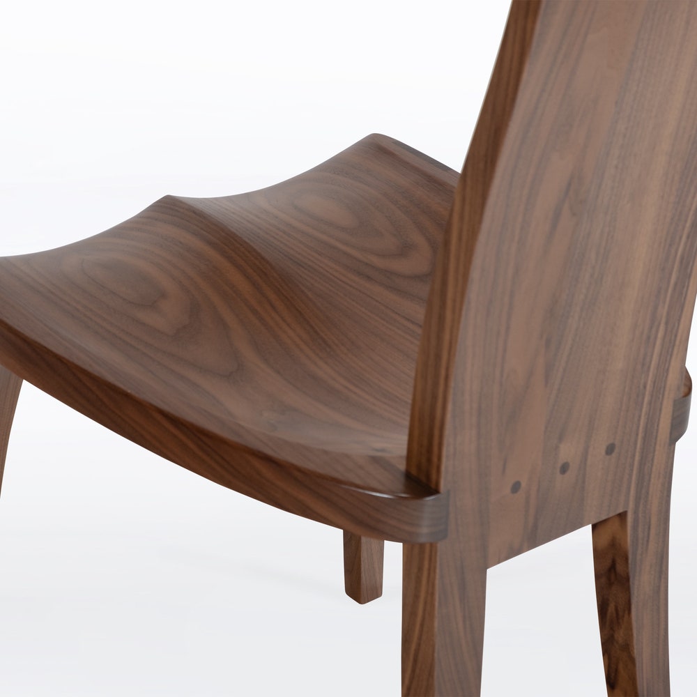 Shown here in solid walnut, the Gazelle high back dining chair is also available in cherry or mahogany wood.