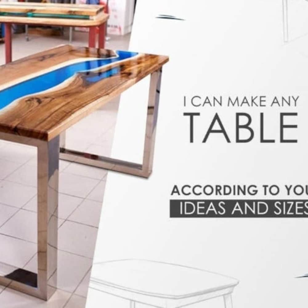 Custom Made Epoxy River Table Top is gorgeous and one of a kind looking Table has ever lasting appeal and gives an Elegance look to your home. The resin river table is brand new and the contemporary design would be a unique addition to your home. With its perfect combination of style and function this piece of furniture is sure to be the star of any room. This modern table will also make for an awesome gift for your friends or relatives.All tables are finished to the highest standard. The epoxy resin is very strong & durable with specialized UV resistance