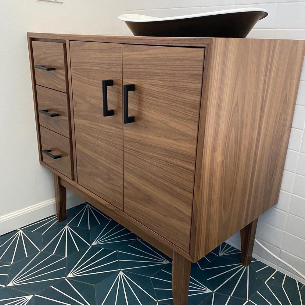 Handmade Mid-Century Modern Bathroom Vanity Cabinet