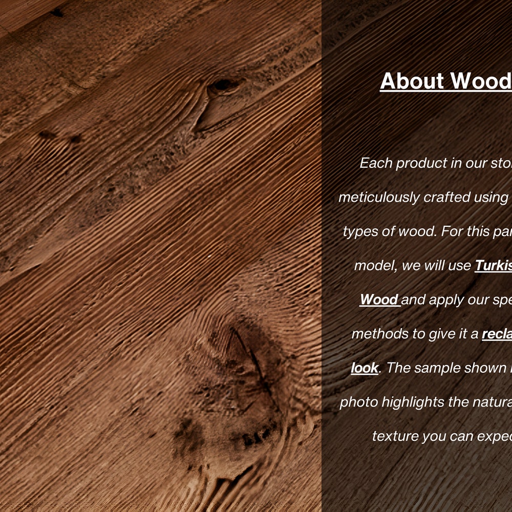 • Reclaimed Fir Wood: Carefully sourced for its natural beauty and environmental benefits.