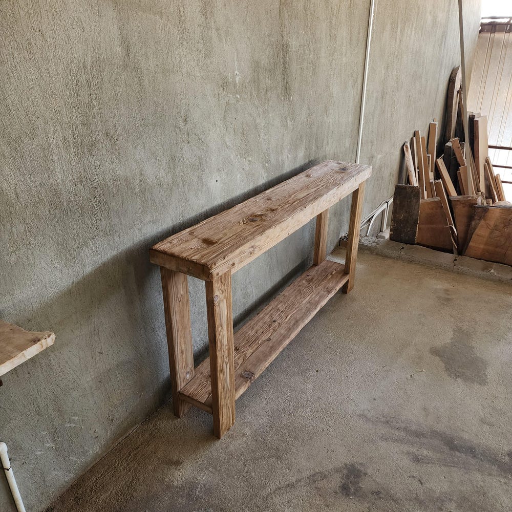 Handmade Rustic Narrow Console Table: Built from reclaimed wood, this slim console table combines rustic charm with sustainable living 🌿. Perfect for entryways or hallways, its timeless design adds elegance to any space 💎. A unique, eco-conscious gift for handmade furniture enthusiasts 🎁.