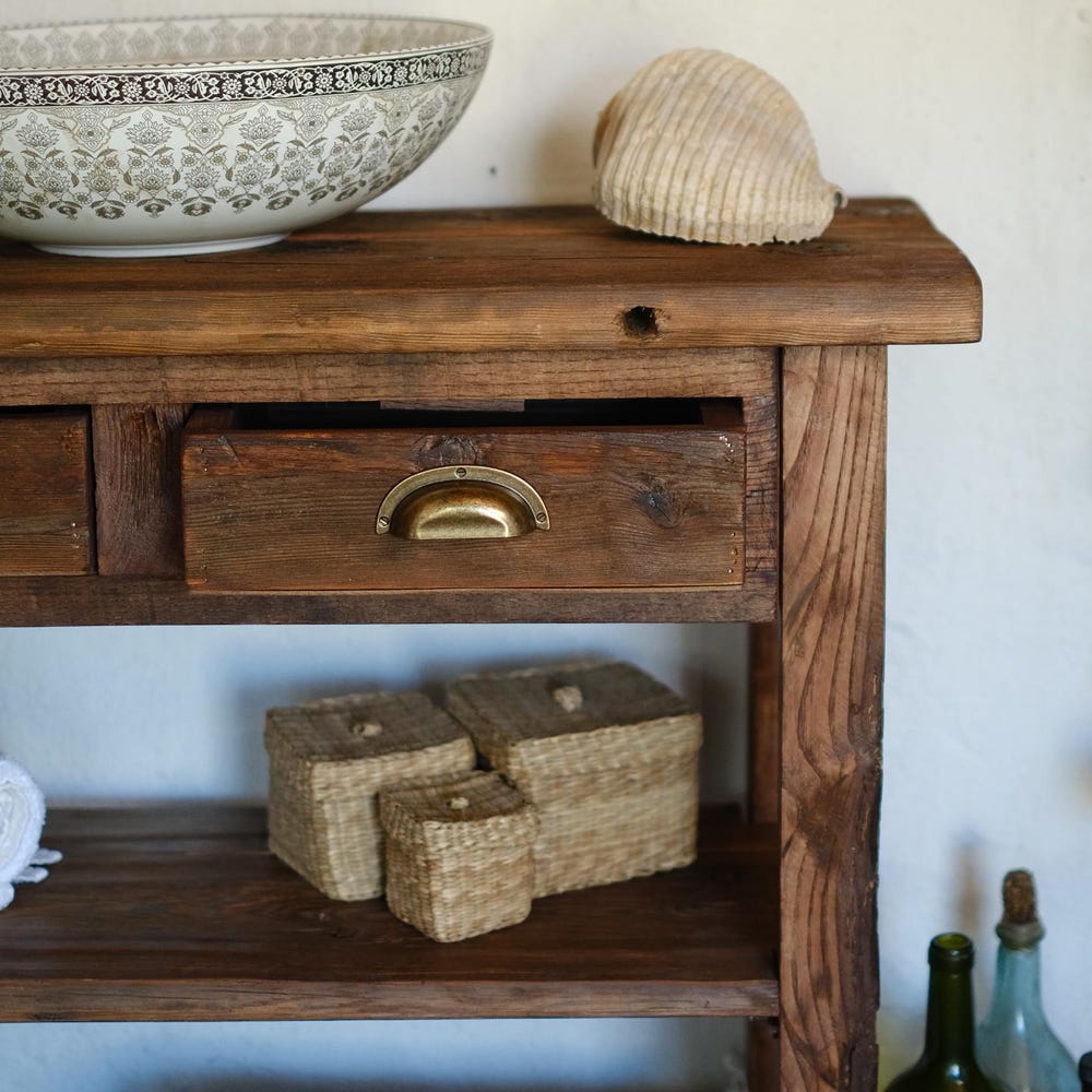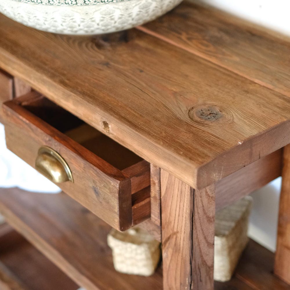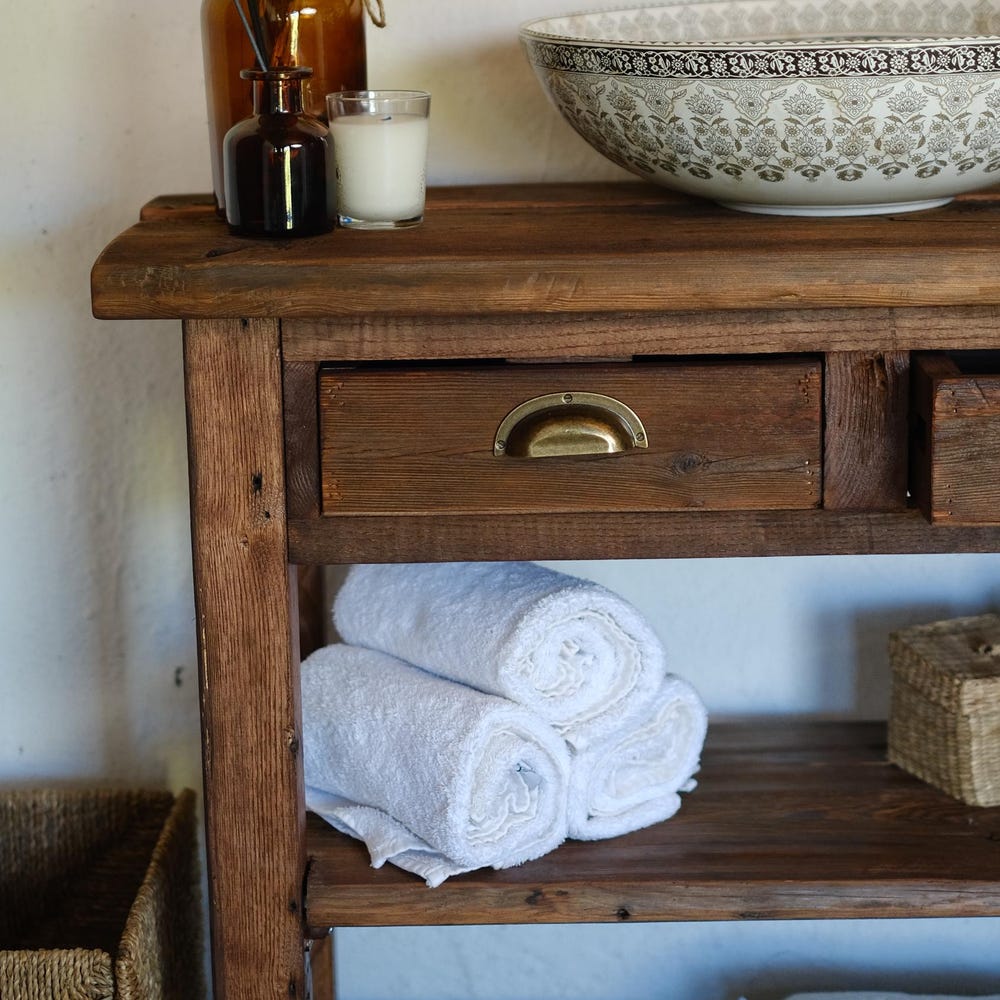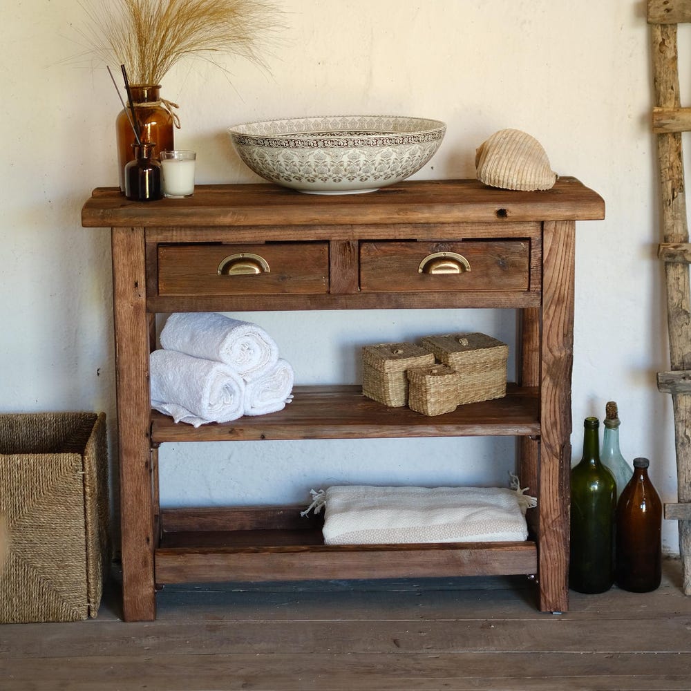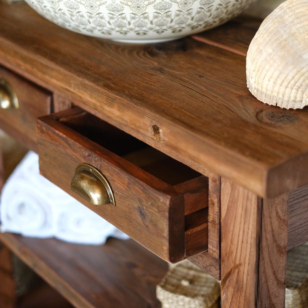 The Rustic Bathroom Vanity features a stunning reclaimed finish that can create a unique look in any room. The table is made of solid wood and handcrafted by skilled craftsmen with a passion for perfection.