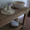 – Rustic farmhouse design, ideal as a bathroom vanity or makeup table.