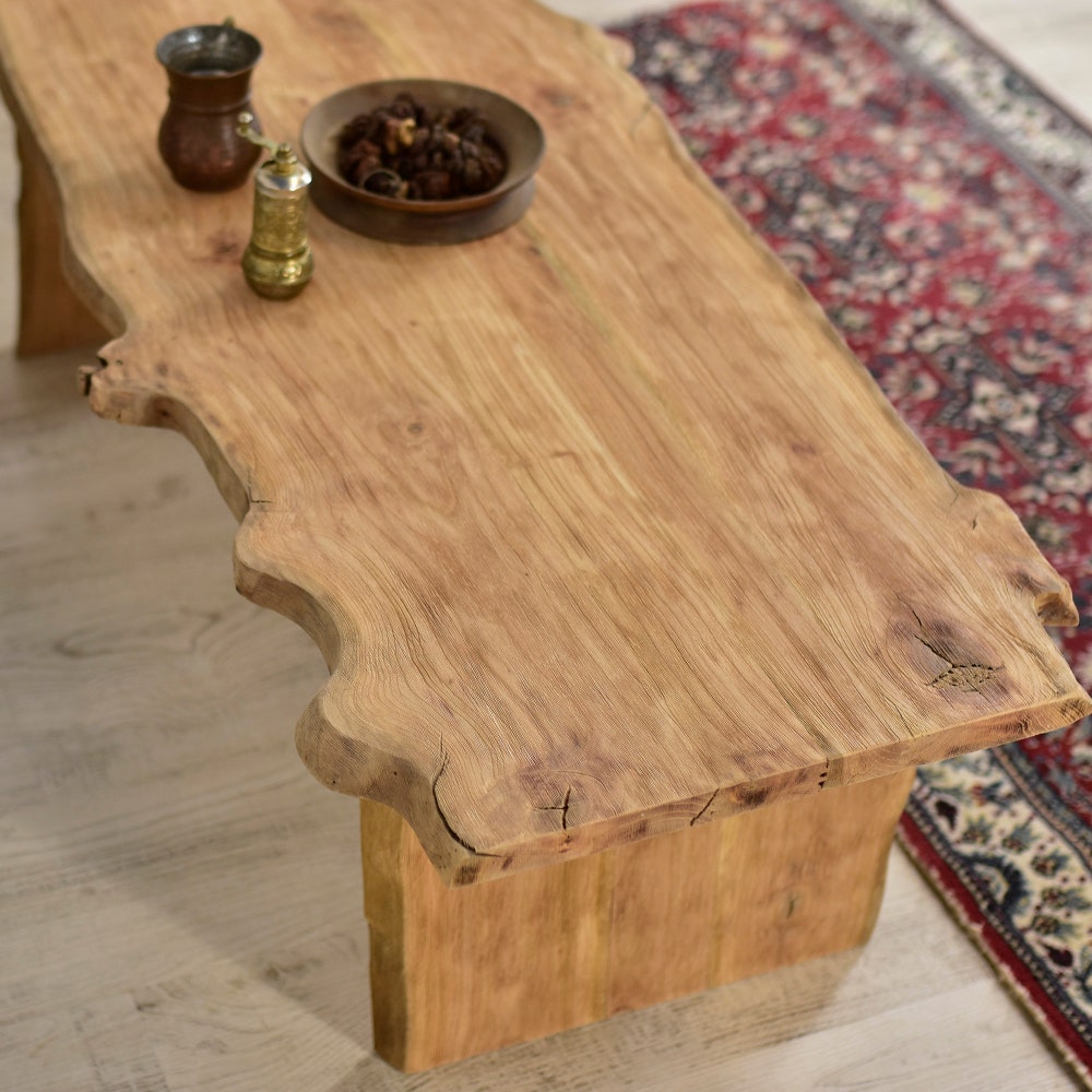 Thanks to its health-friendly, and thus user-friendly handmade natural form, it can be used anywhere you wish in your place -from living rooms to hallways. Its live edge touch and harmless wood preservatives, in addition to its features above, make it an exclusive choice.