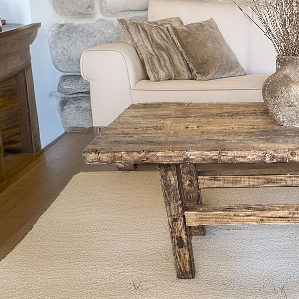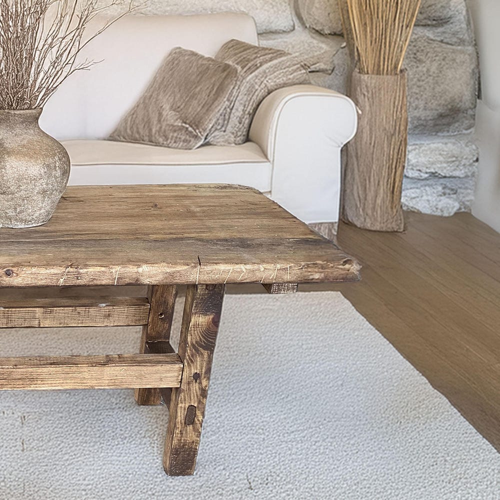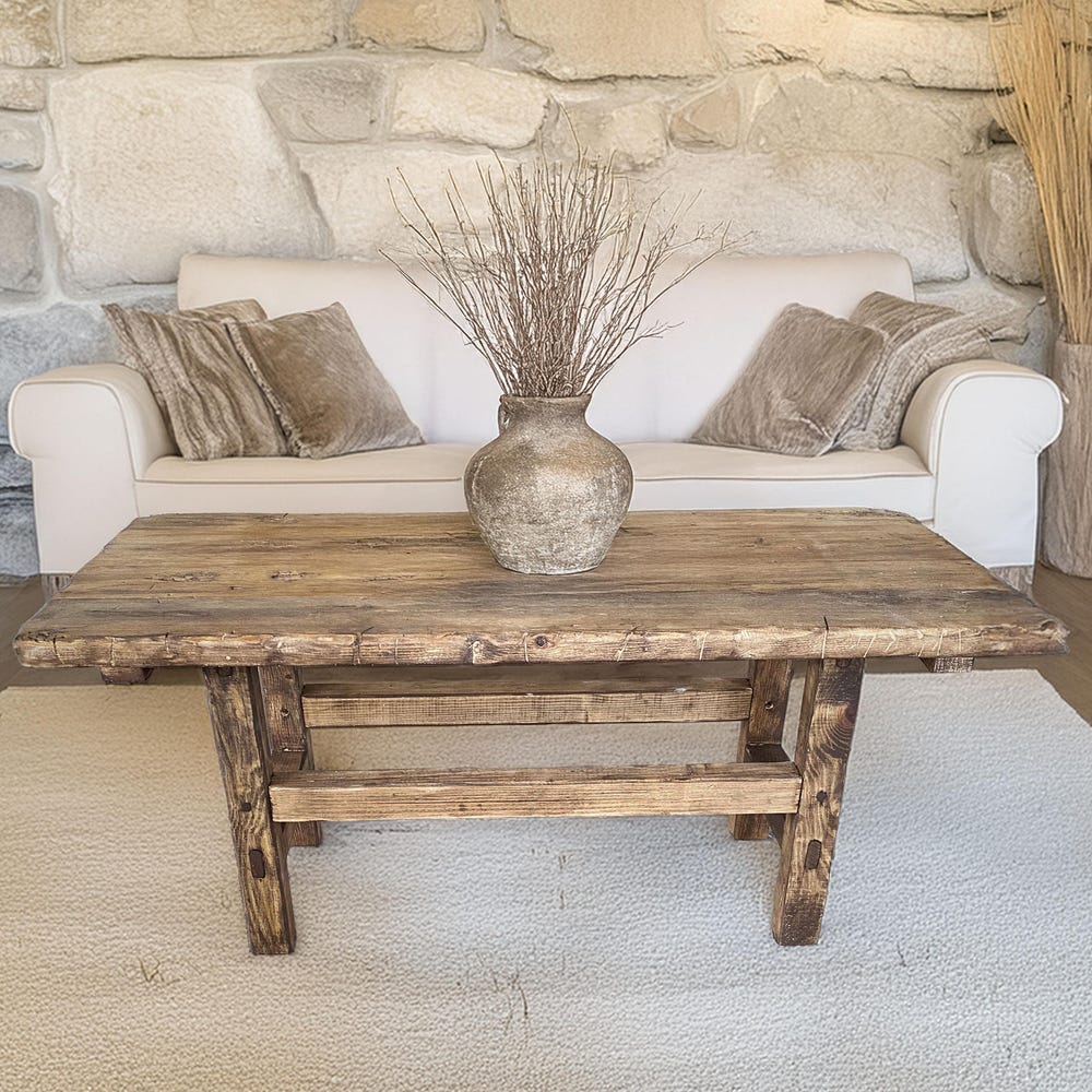 Handmade Rustic Coffee Table – Solid Wood Farmhouse Table – Reclaimed Wood Low Table – Vintage Wooden Living Room Table – Natural Wood Decor