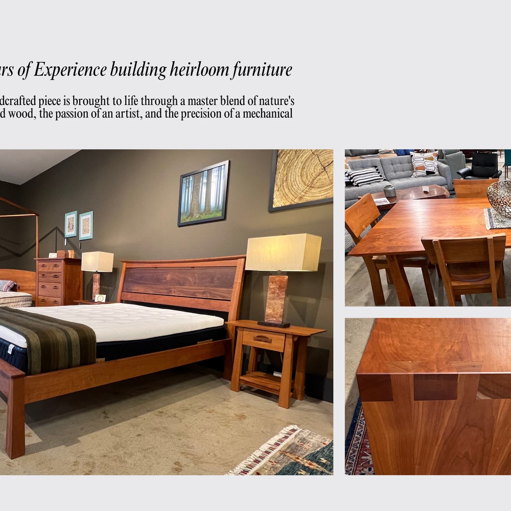 All my furniture is handmade here in Ohio. Each item is made to order and I offer customization of most items. If you ever find yourself in Ohio, please visit my showroom located at 4555 N. High St, Columbus Ohio 43214.
