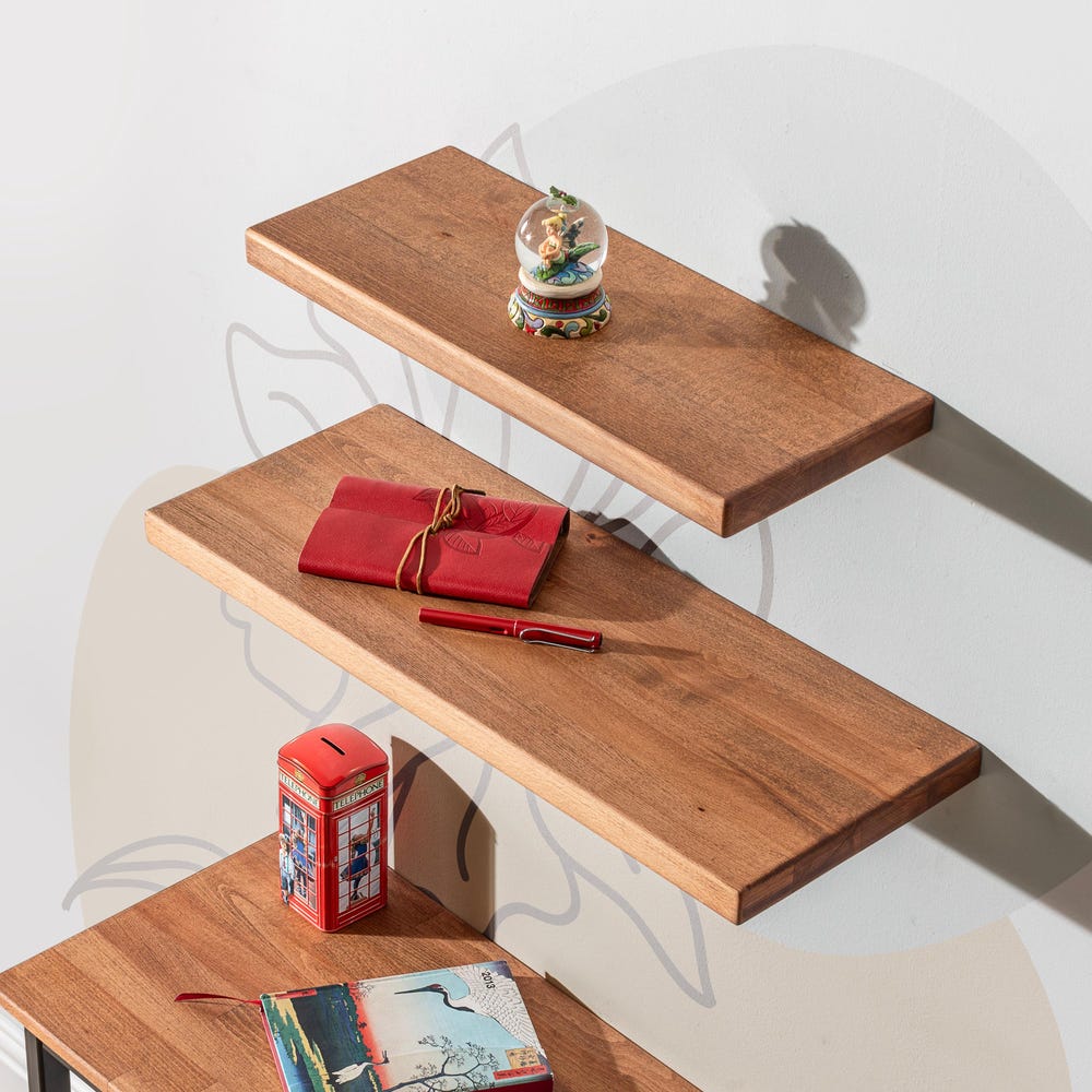 Handmade Wooden Floating Shelf – Solid Beech Wood with a Smooth Natural Brown Finish