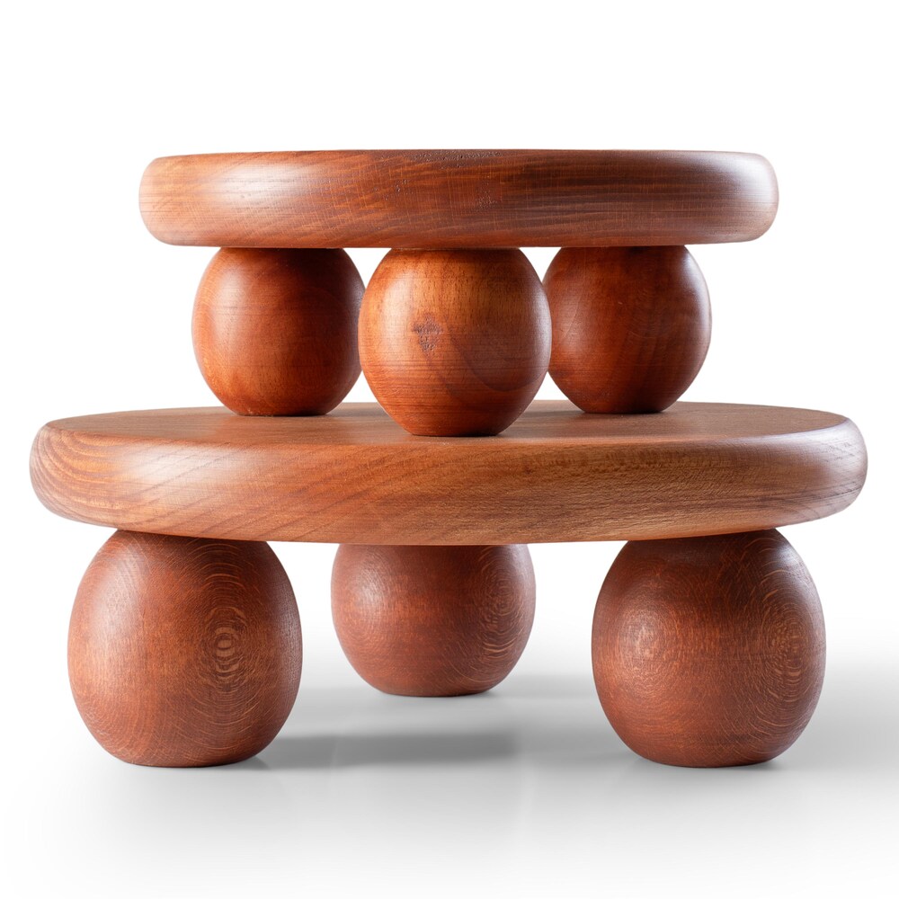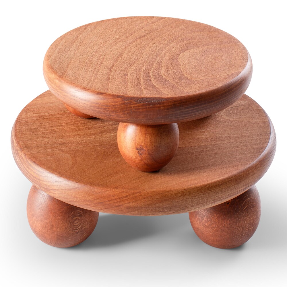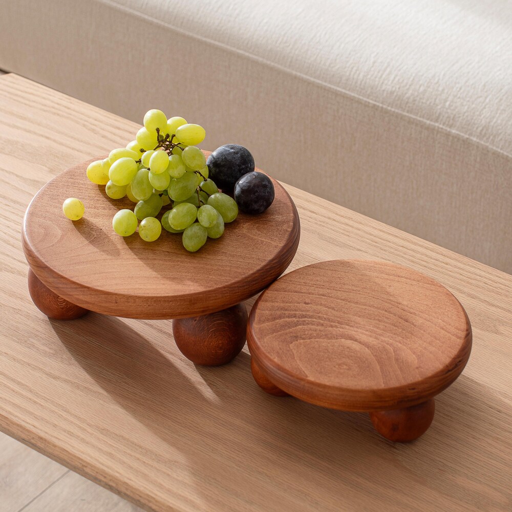 Handmade Wooden Serving Board Set, Round Snack Cheese Platter with Foot, Charcuterie Serving Stand, Cake Stand, Wood Centerpiece