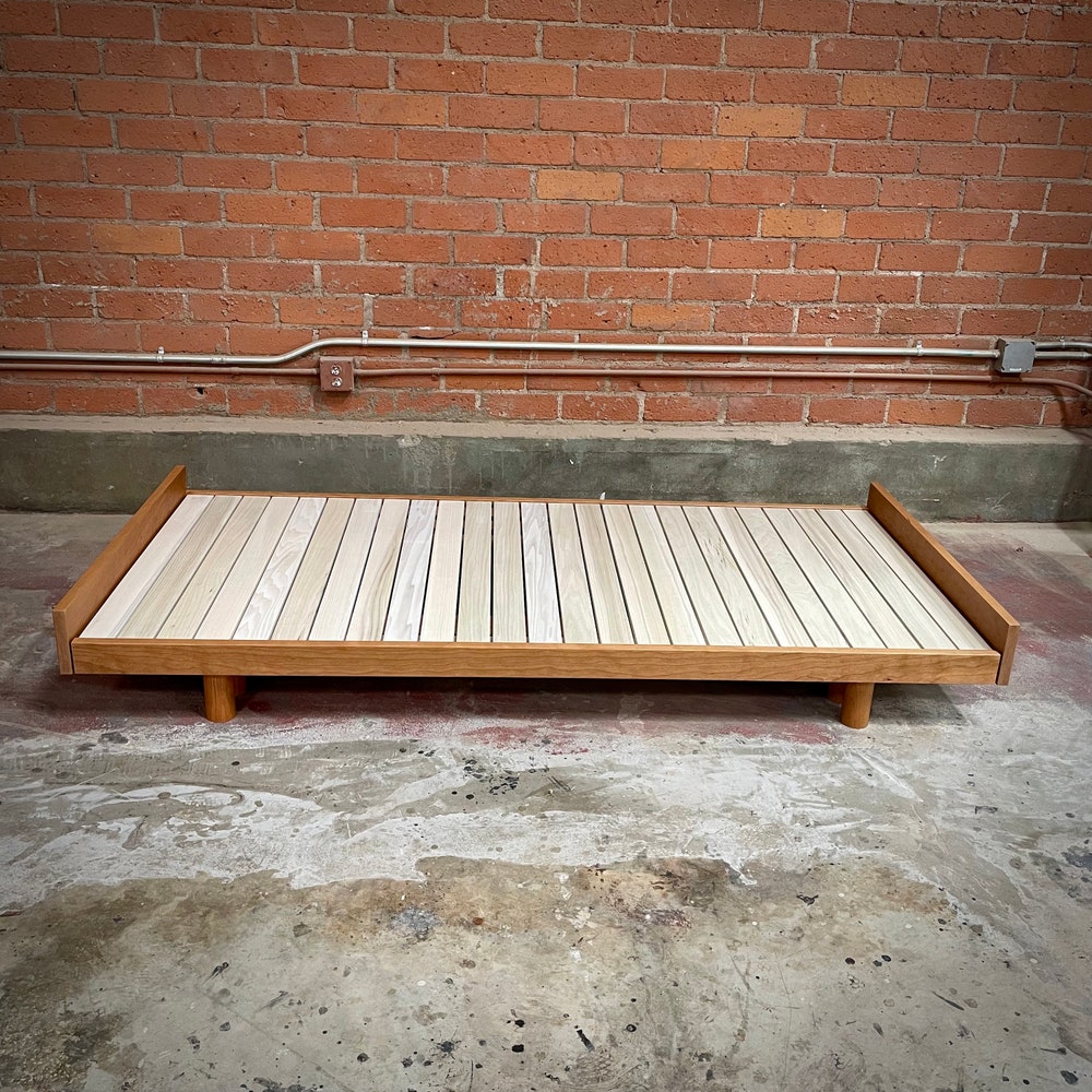 HANNA guest bed / daybed converts from a twin XL (38″x80″) to a queen size (60″x80″) bed with a simple pull out of the frame. The bed is very solid and sturdy, in a minimalist style reminiscent of Japanese beds with MCM aesthetics. Mattress pads are NOT included.