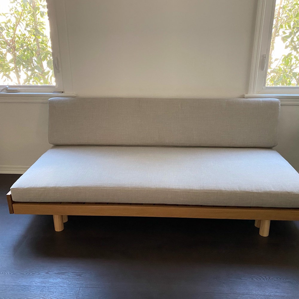 HANNA guest bed / daybed converts from a twin XL (38″x80″) to a queen size (60″x80″) bed with a simple pull out of the frame. The bed is very solid and sturdy, in a minimalist style reminiscent of Japanese beds with MCM aesthetics. Mattress pads are NOT included.