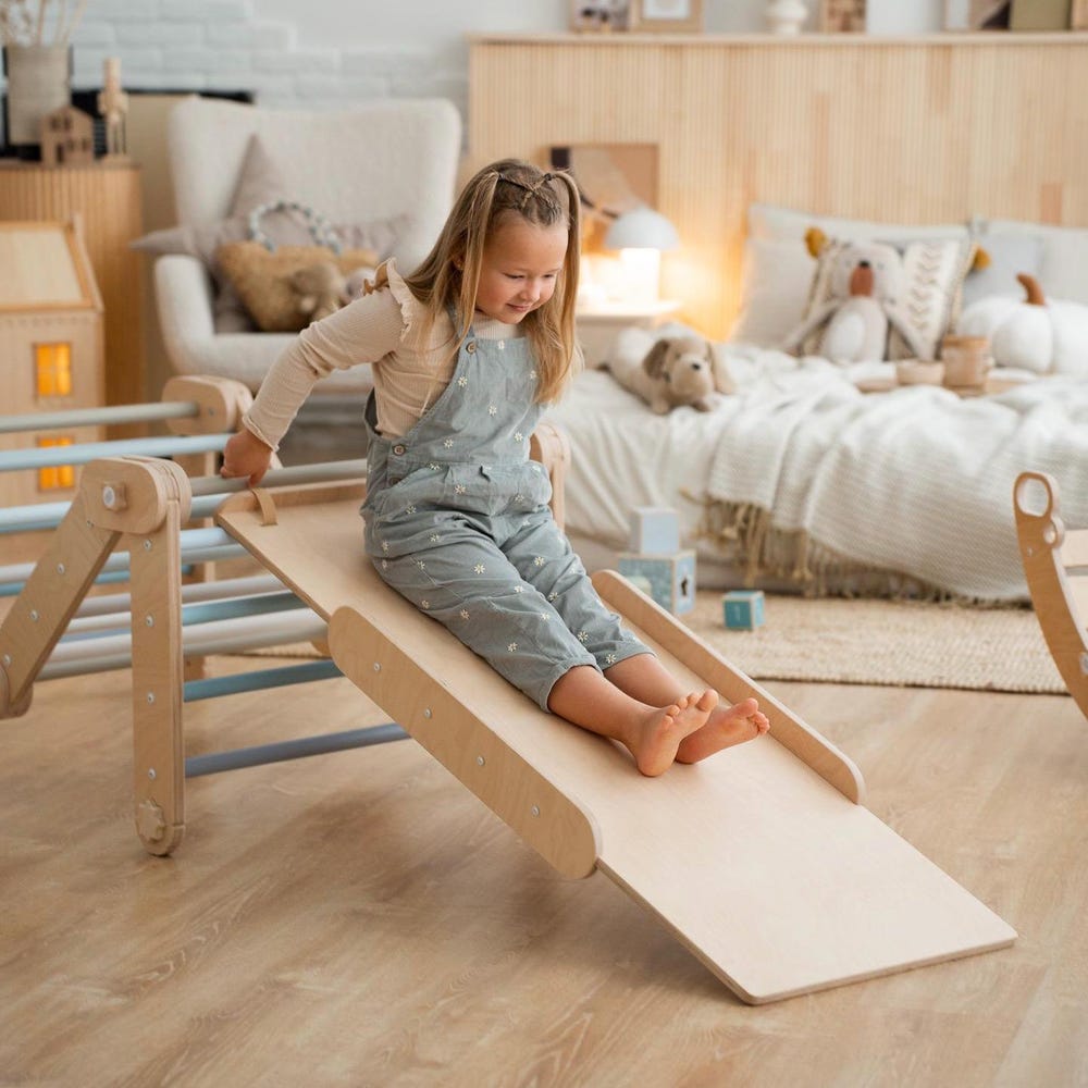 HAPPYMOON® BLUE CLIMBER, modifiable triangle, Montessori, climbing, toddler triangle, climbing triangle, transformable triangle.