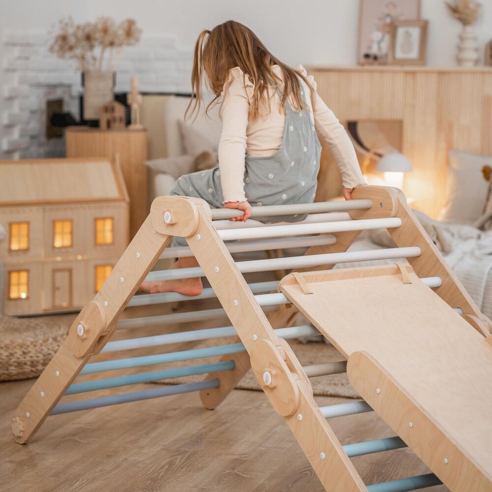 Climber • made in European Union• inspired by Montessori, Pikler’s ideas• handmade craftwork *** NEXT DAY SHIPPING RULES ***Next day shipping valid only if you have sent us PHONE NUMBER which is required for courier delivery. Next-day shipping is excluded on weekends and holidays. *****SHORT DESCRIPTION********An adjustable climbing frame or climbing triangle will be perfect […]