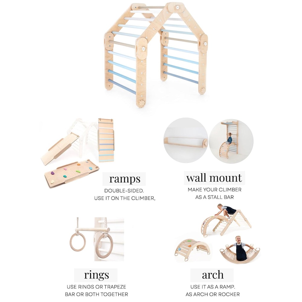 HAPPYMOON® BLUE CLIMBER, modifiable triangle, Montessori, climbing, toddler triangle, climbing triangle, transformable triangle.